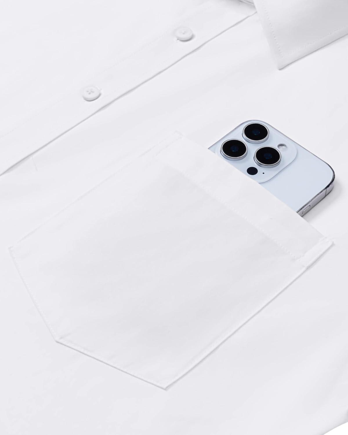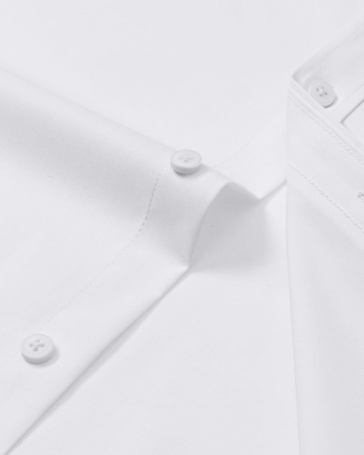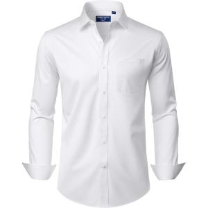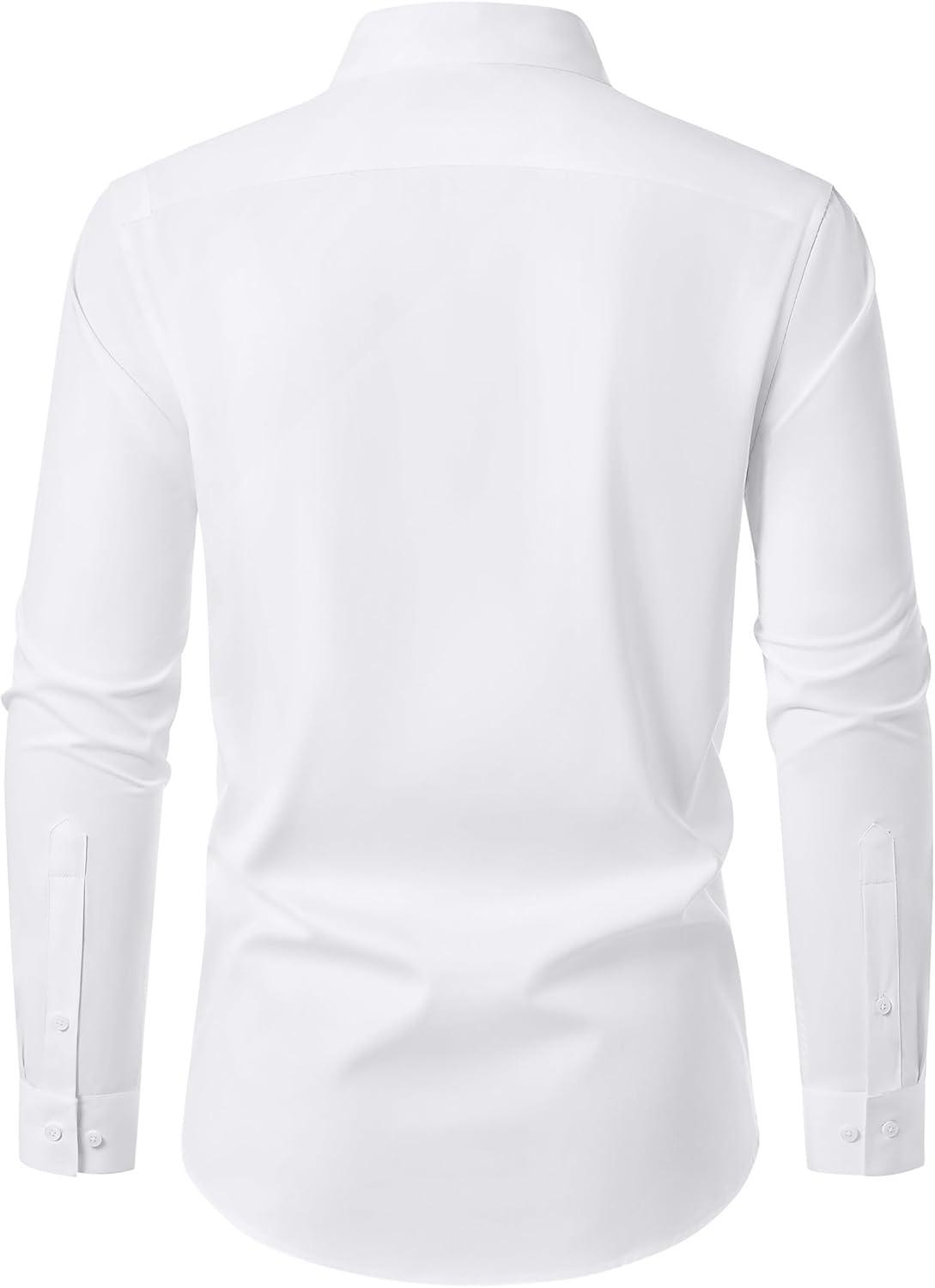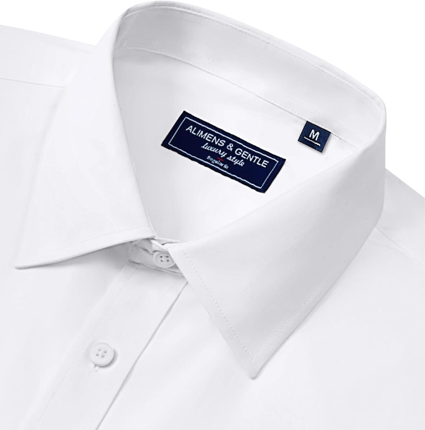 Alimens & Gentle Mens Dress Shirts Long Sleeve Wrinkle Free Stretch Business Casual Button Down Shirts(White)
