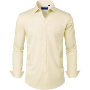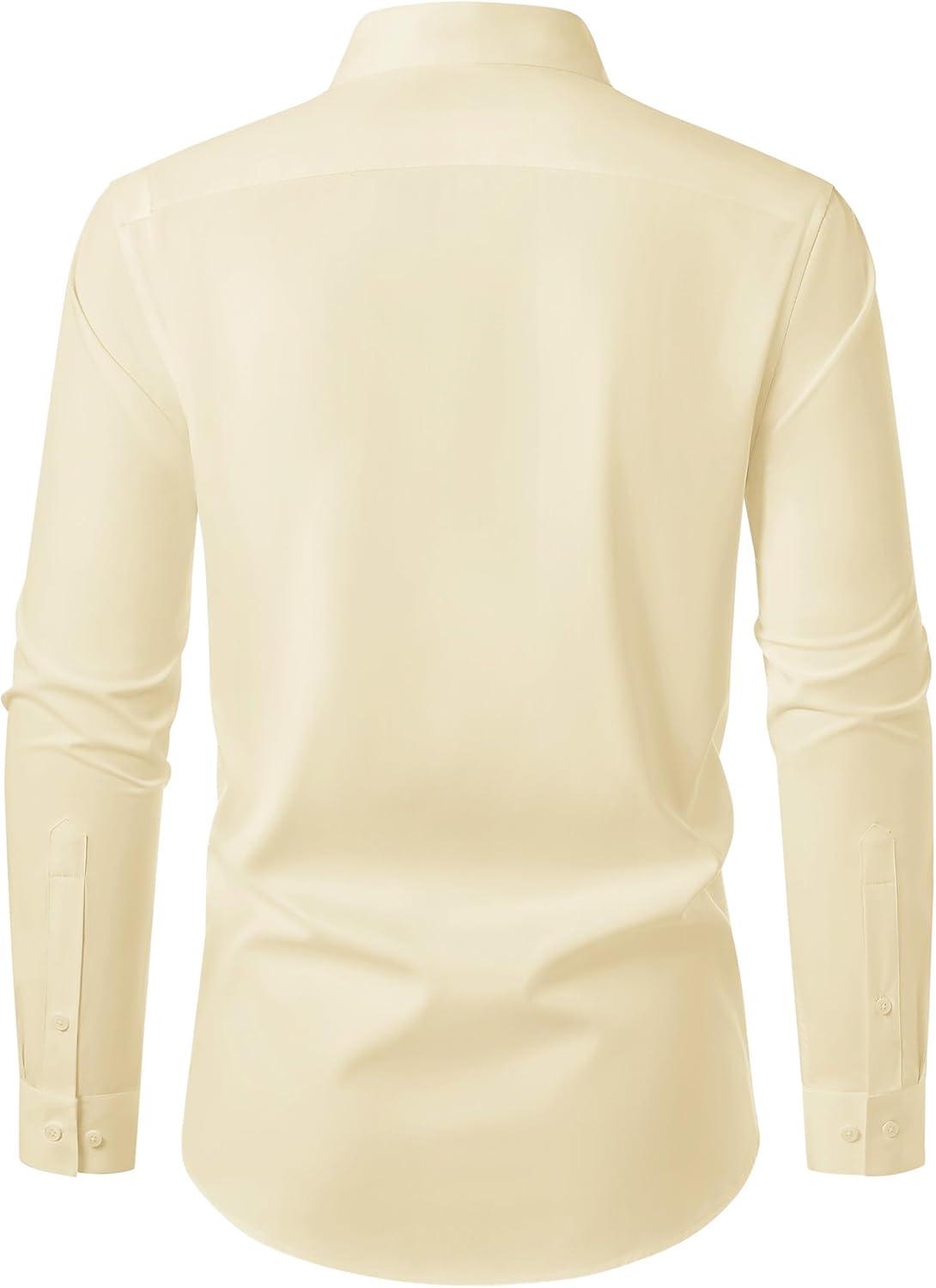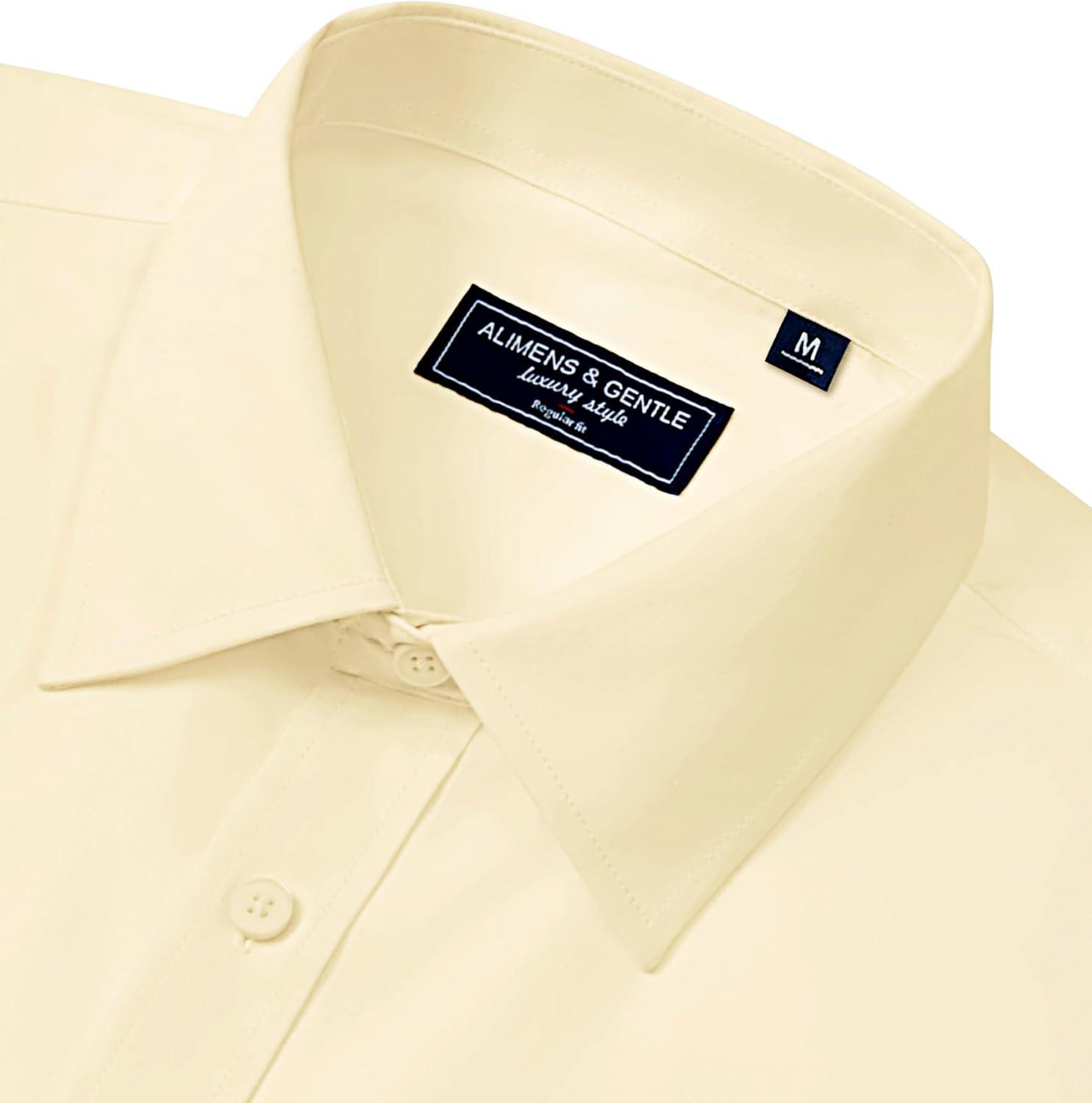 Alimens & Gentle Mens Dress Shirts Long Sleeve Wrinkle Free Stretch Business Casual Button Down Shirts(Yellow)