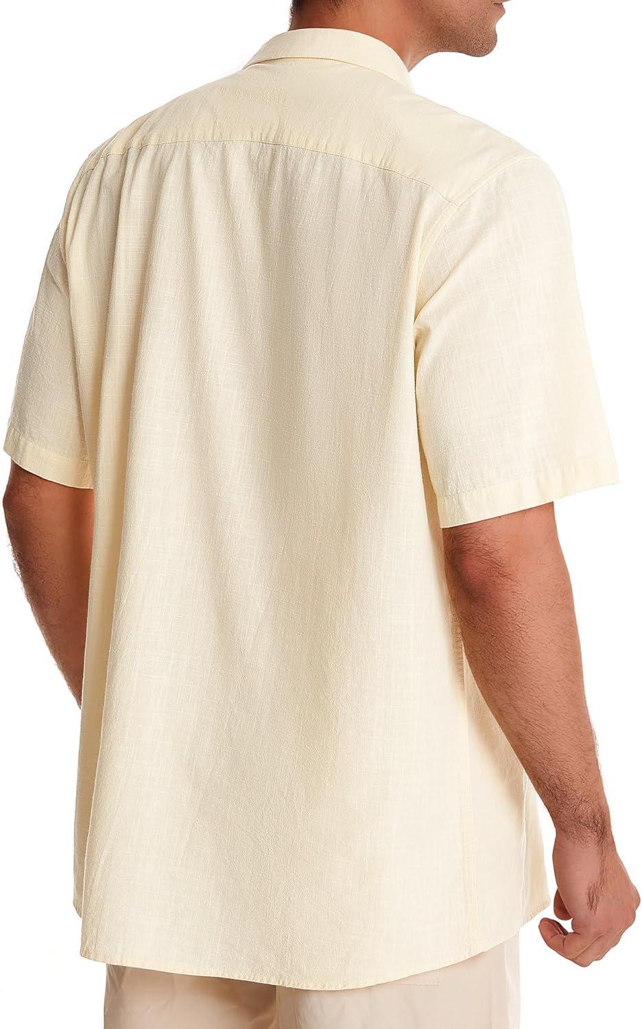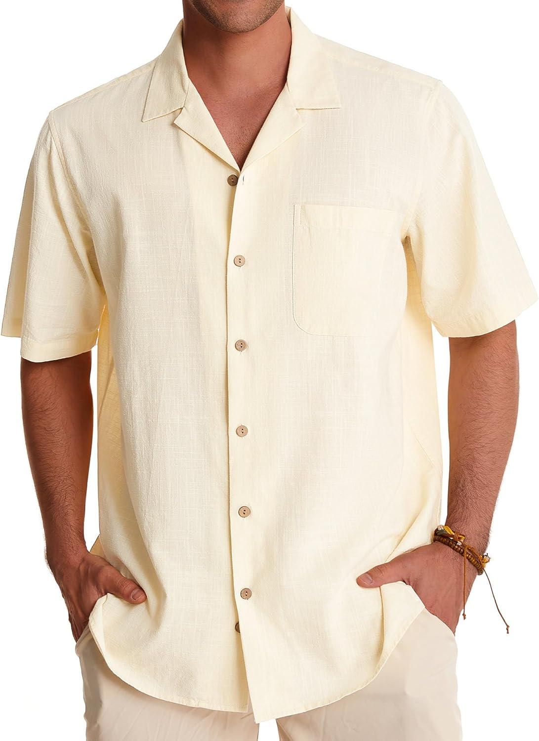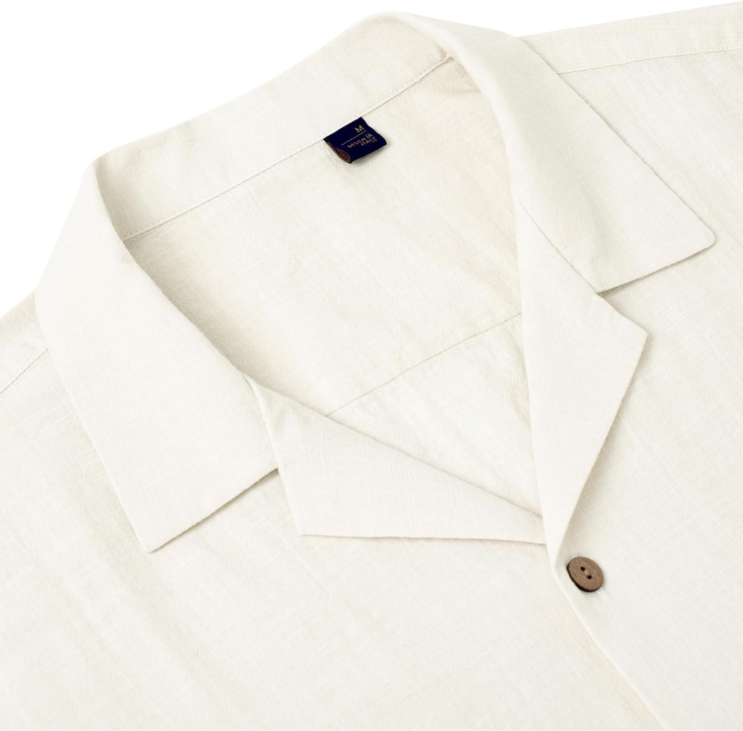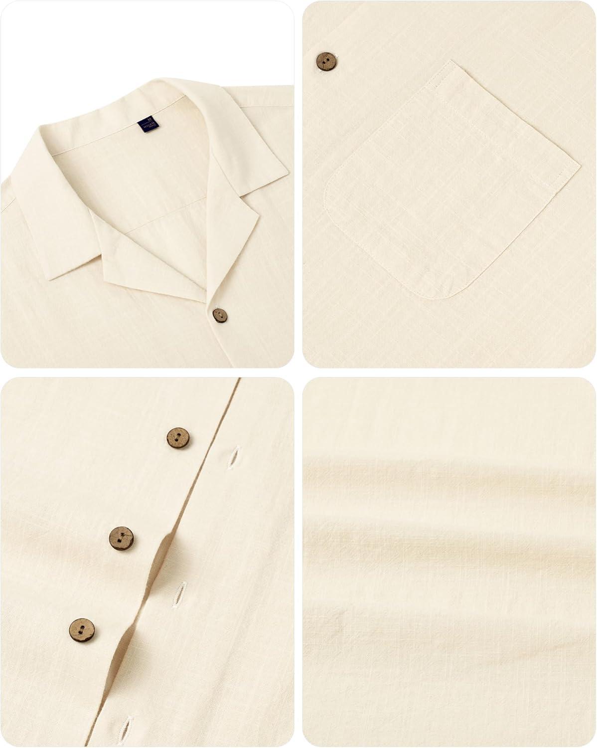 Alimens & Gentle Mens Linen Shirts Cotton Hawaiian Shirts Short Sleeve Button Down Shirts Casual Summer Beach Tops(Cloud Cream)