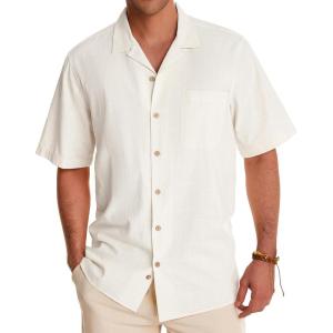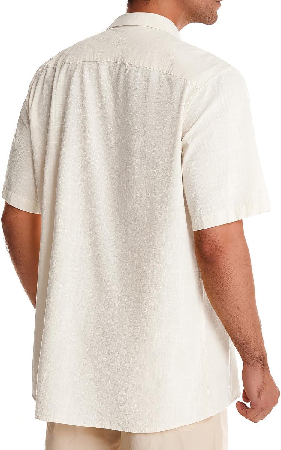 Alimens & Gentle Mens Linen Shirts Cotton Hawaiian Shirts Short Sleeve Button Down Shirts Casual Summer Beach Tops(A-creamy White)