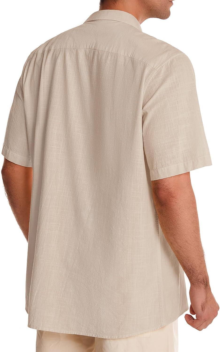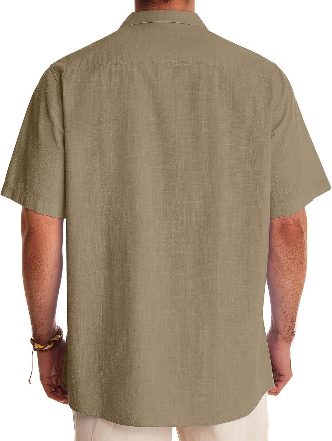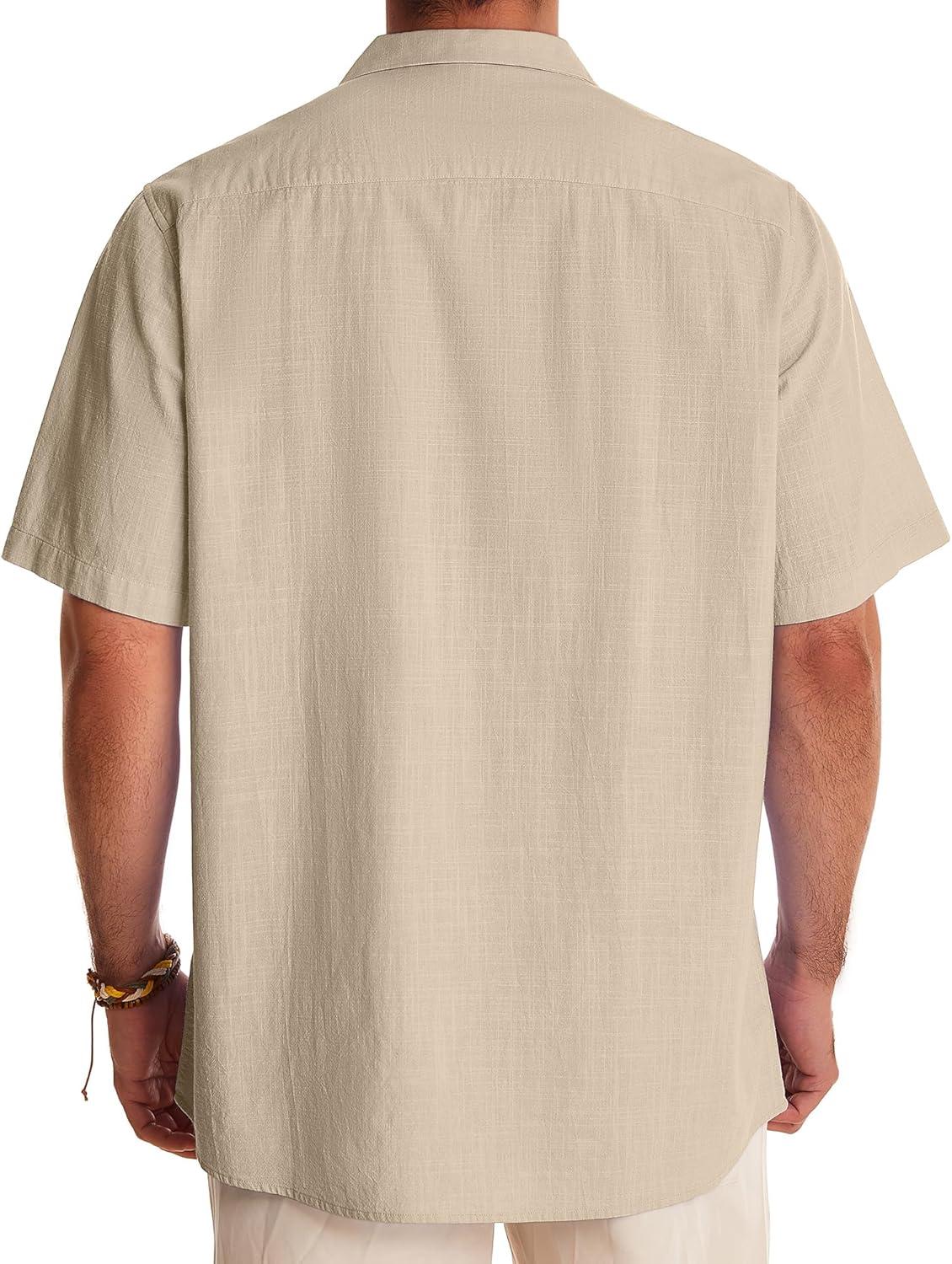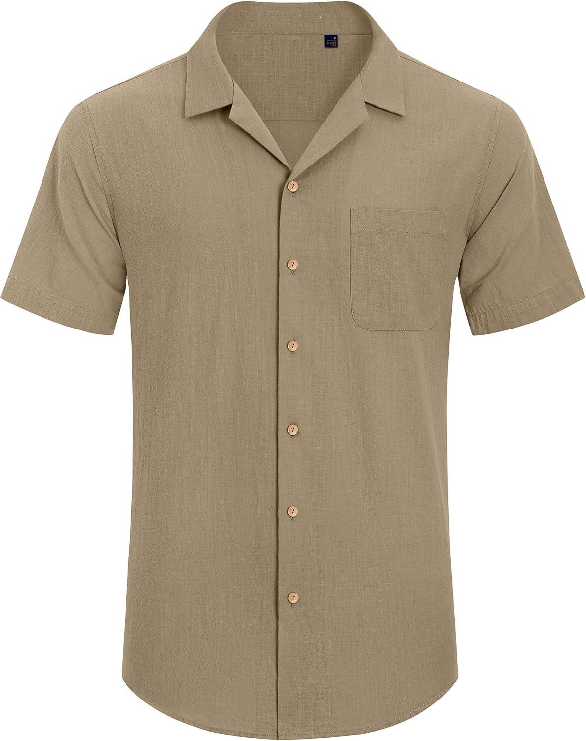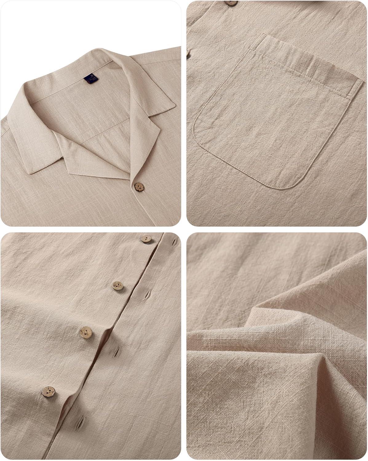 Alimens & Gentle Mens Linen Shirts Cotton Hawaiian Shirts Short Sleeve Button Down Shirts Casual Summer Beach Tops(Beige)