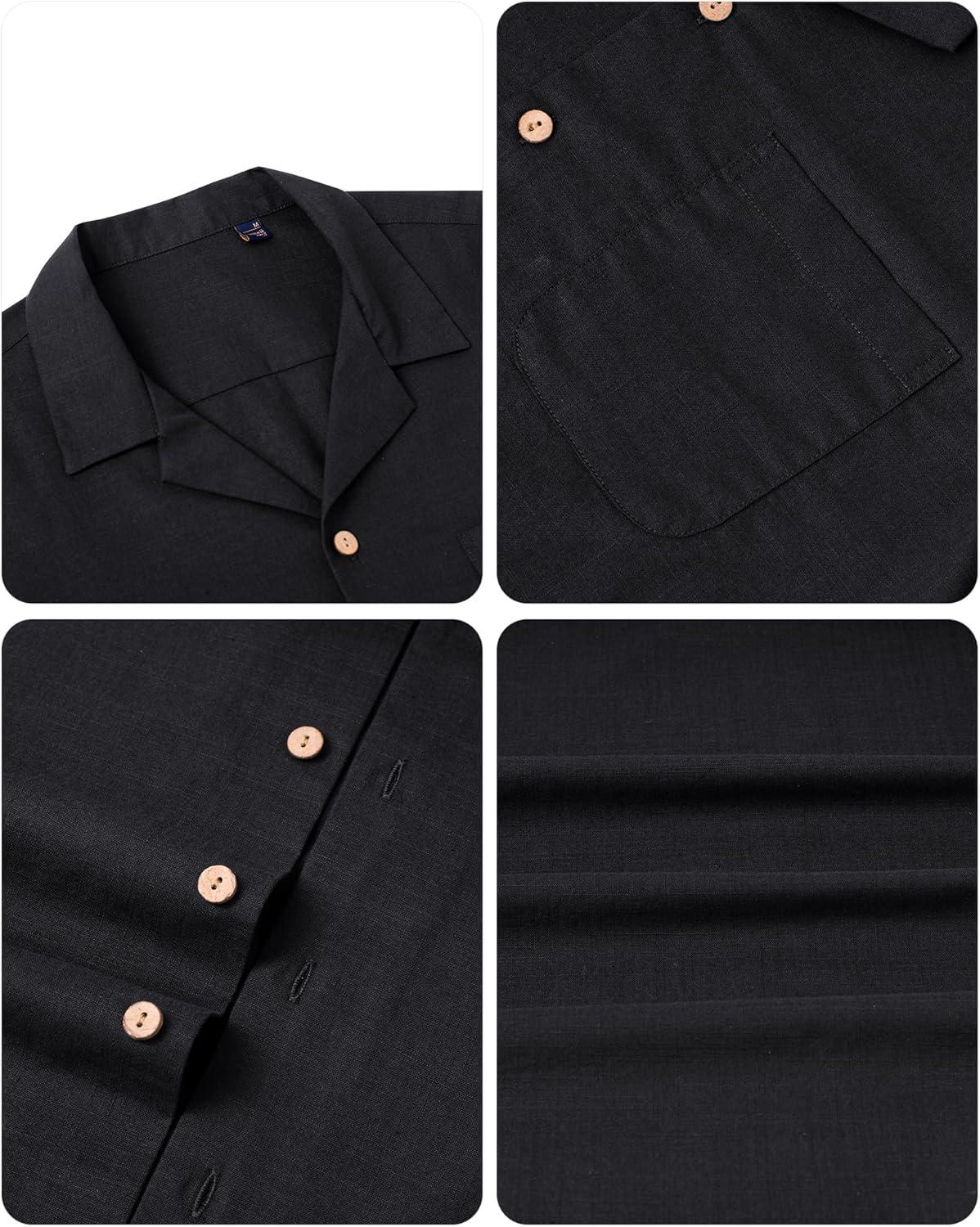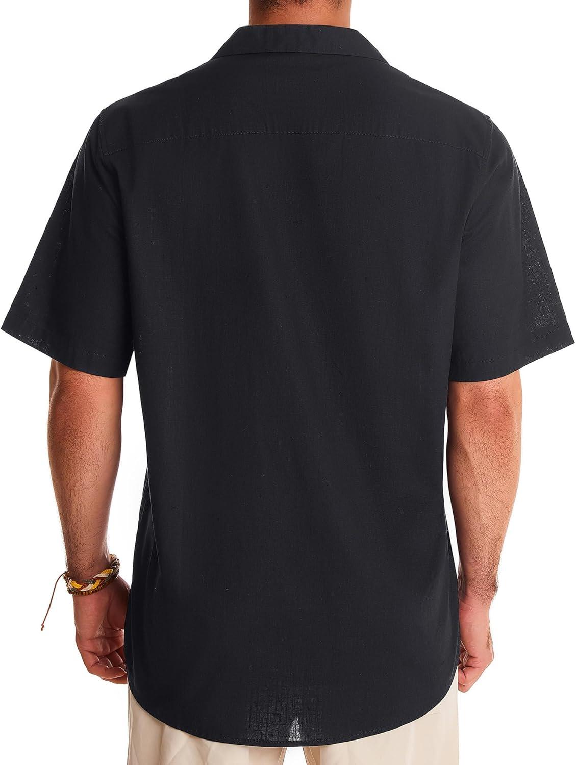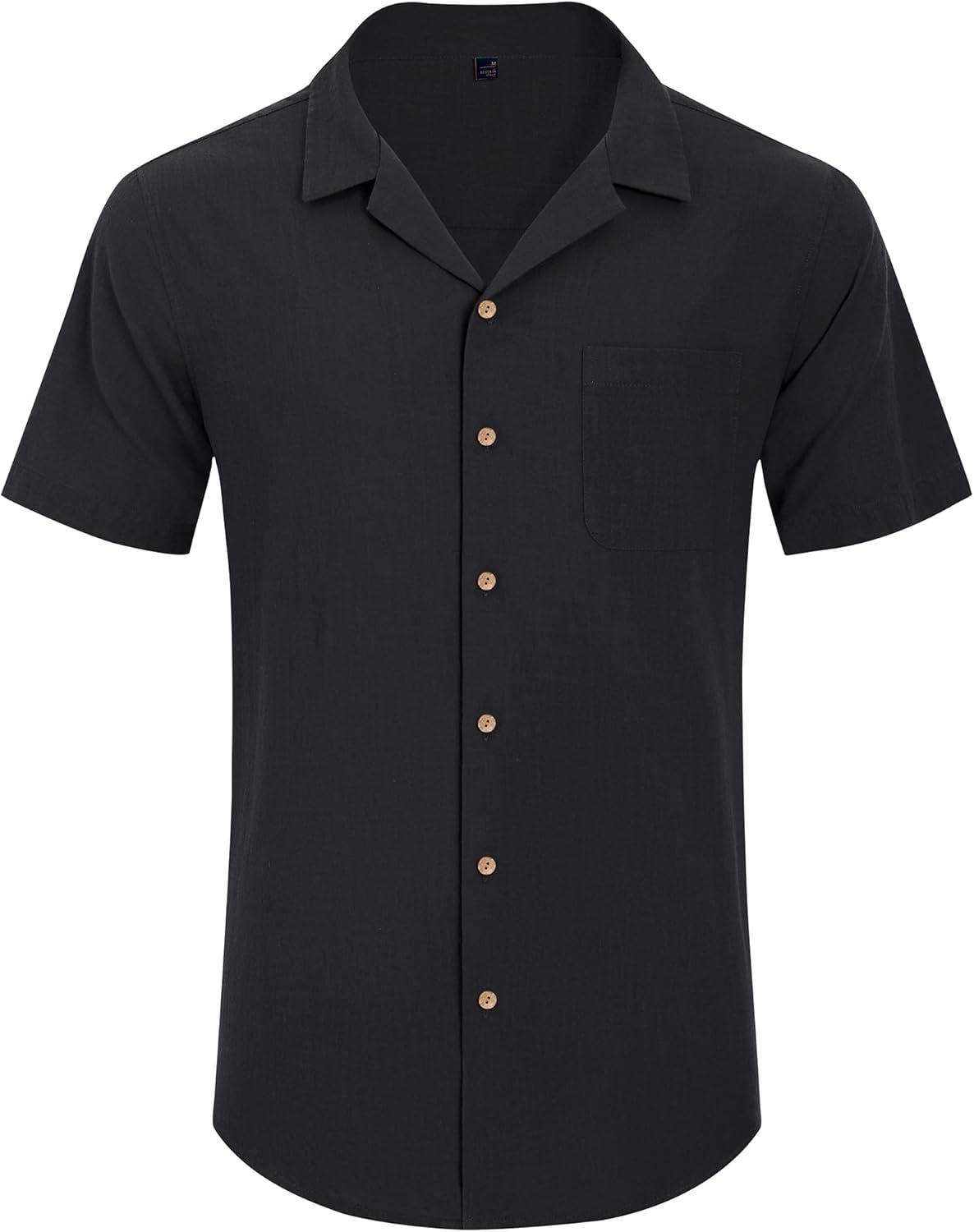 Alimens & Gentle Mens Linen Shirts Cotton Hawaiian Shirts Short Sleeve Button Down Shirts Casual Summer Beach Tops(Black)
