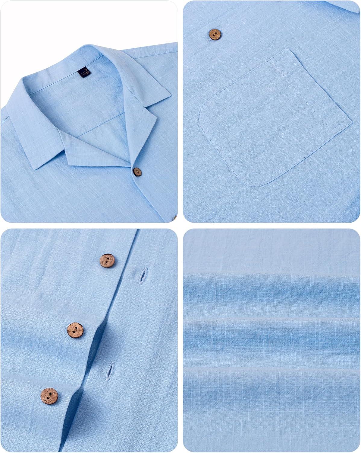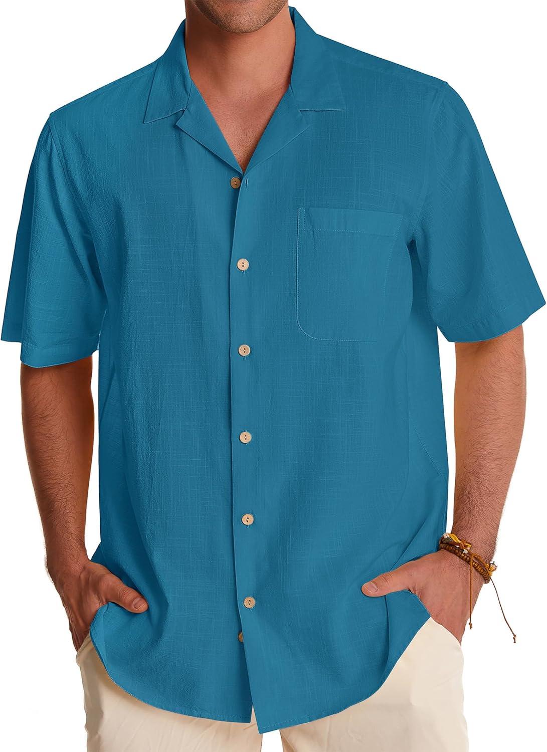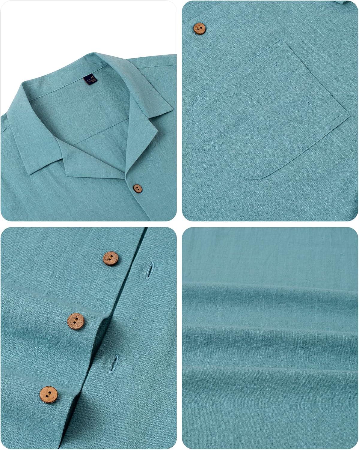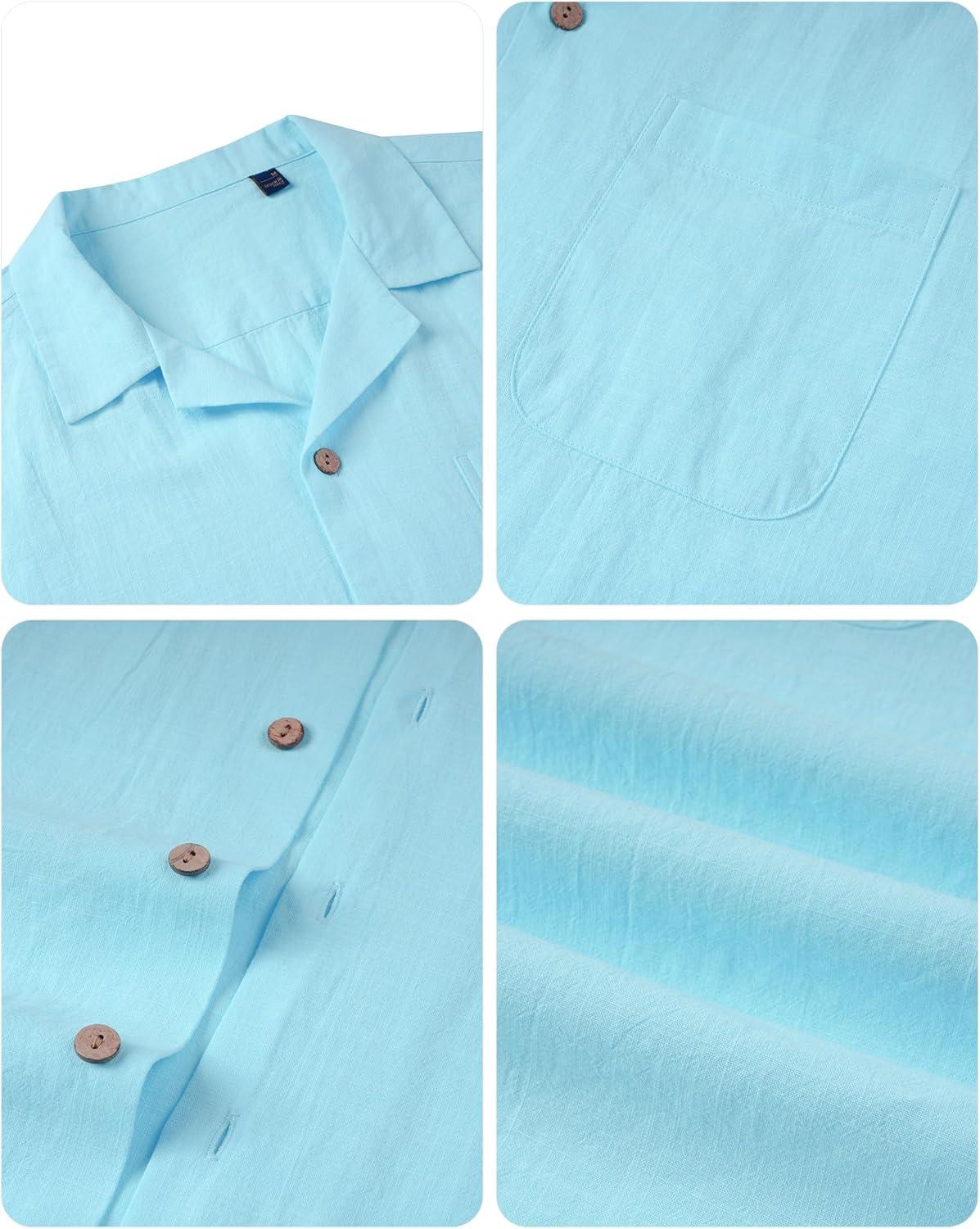 Alimens & Gentle Mens Linen Shirts Cotton Hawaiian Shirts Short Sleeve Button Down Shirts Casual Summer Beach Tops(Cool Blue)