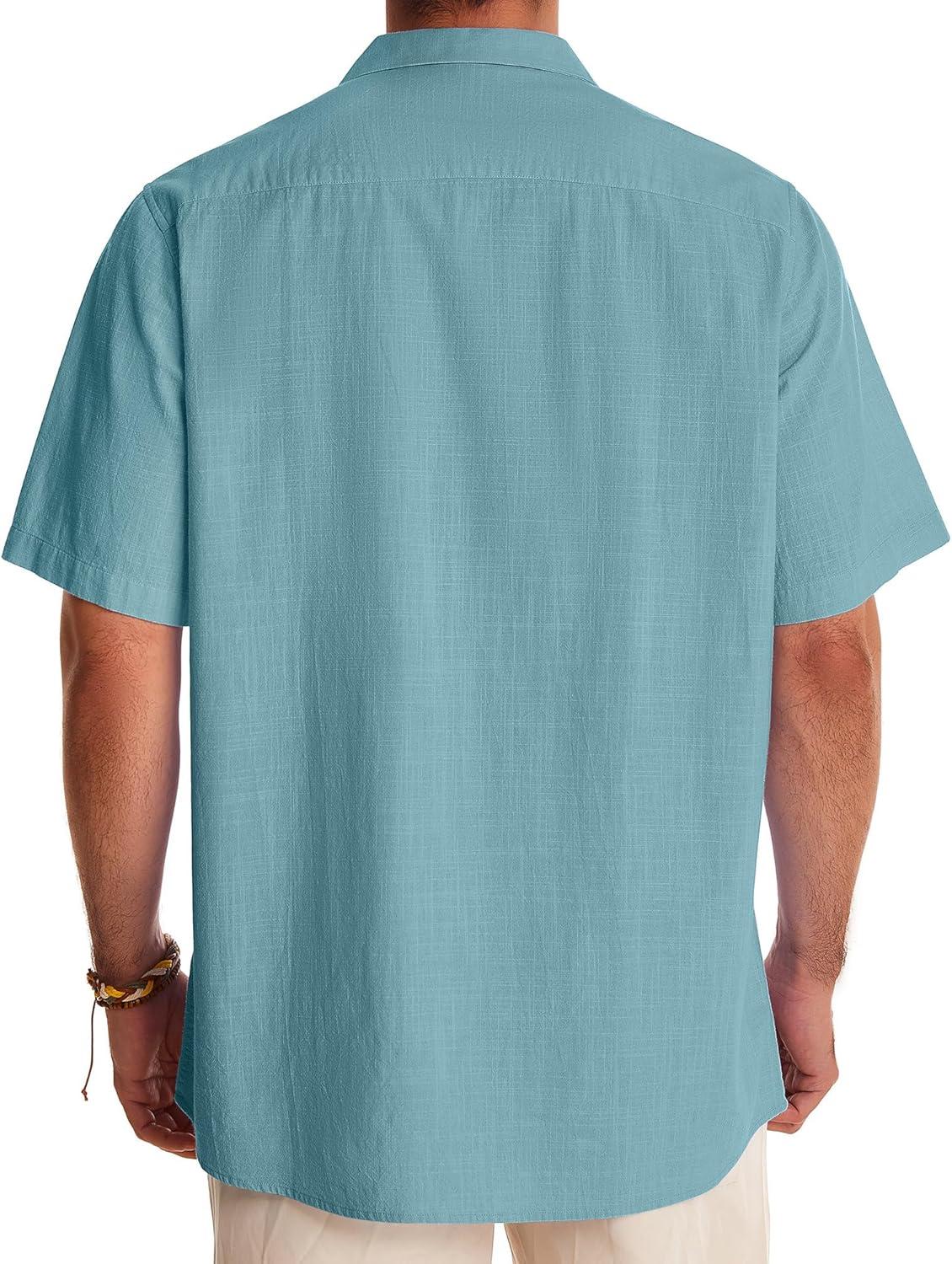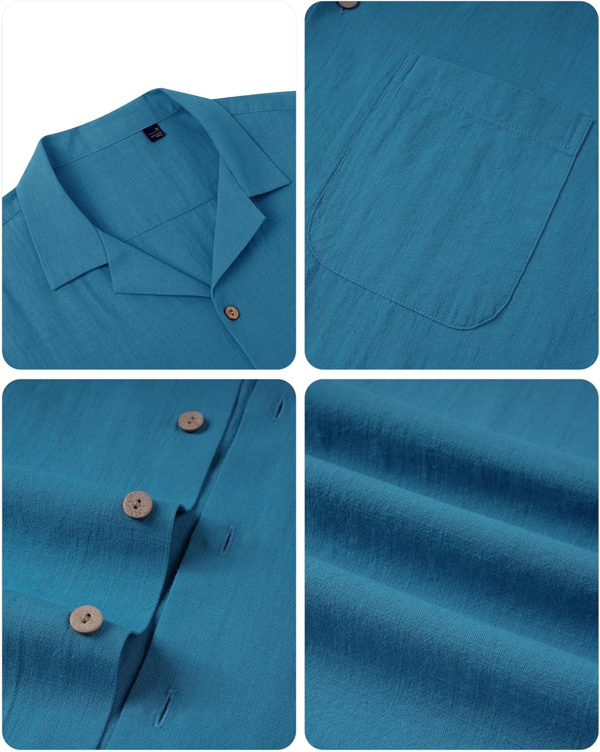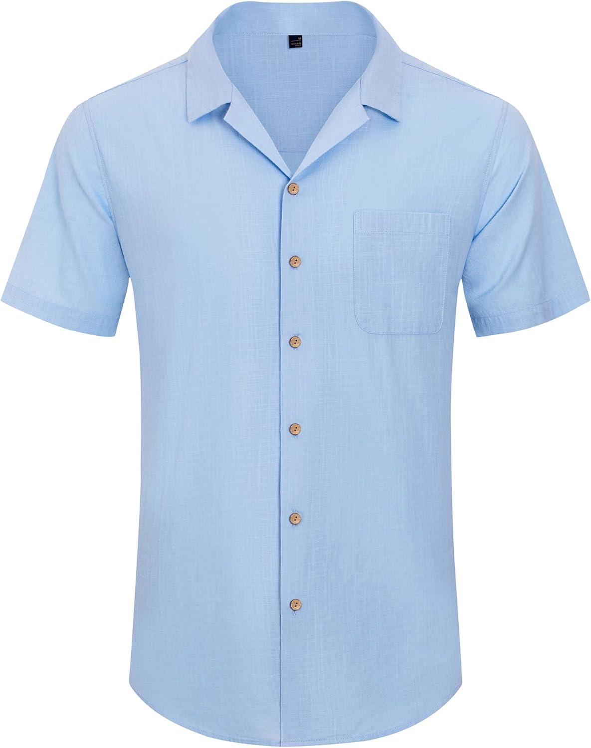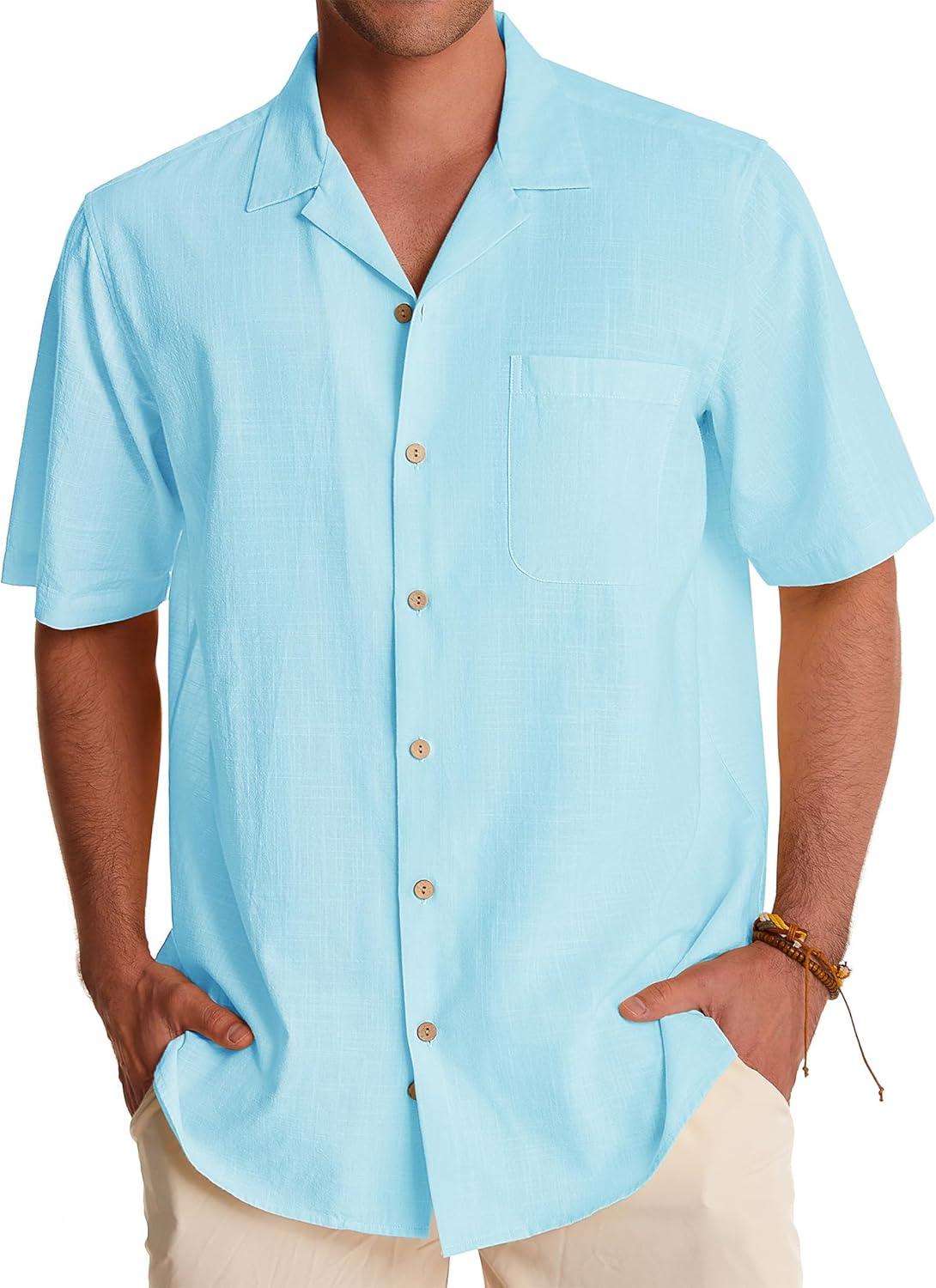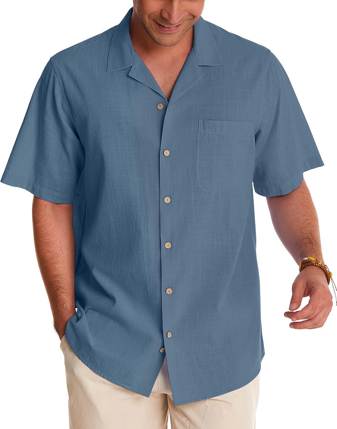 Alimens & Gentle Mens Linen Shirts Cotton Hawaiian Shirts Short Sleeve Button Down Shirts Casual Summer Beach Tops(Cool Blue)