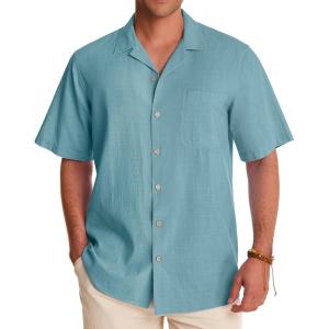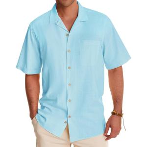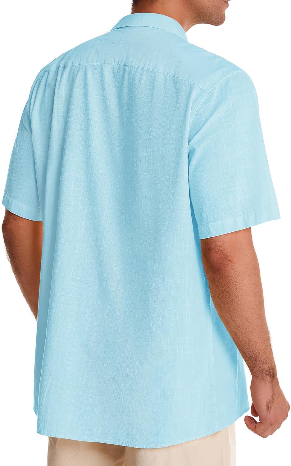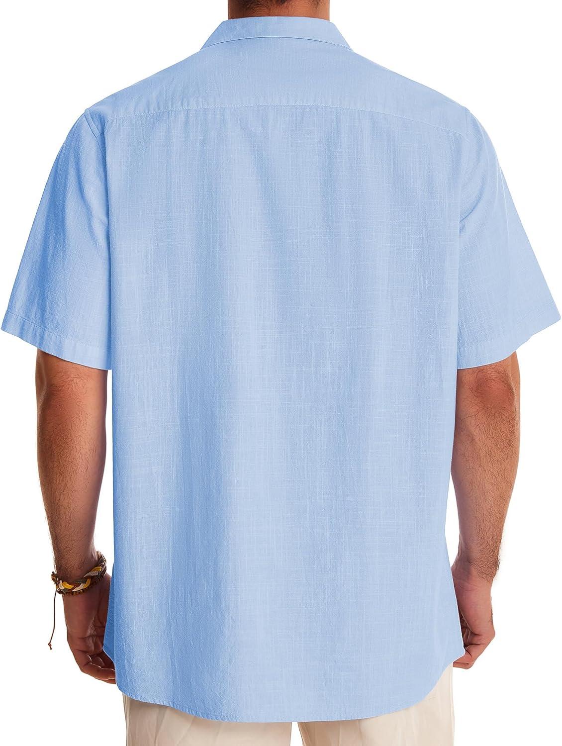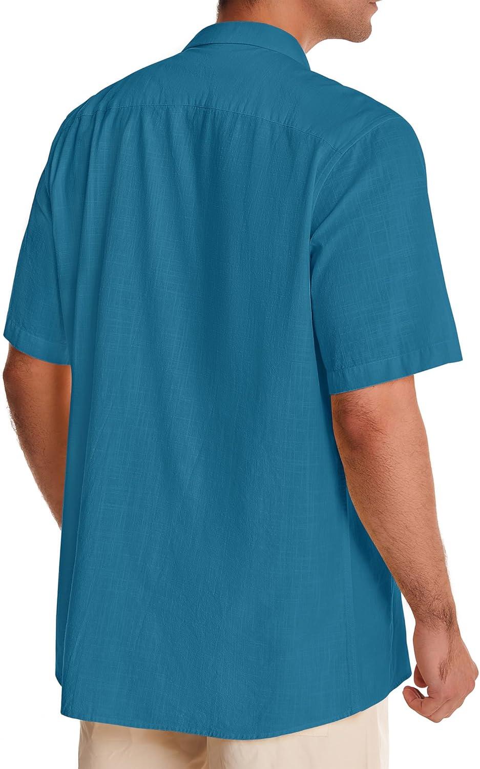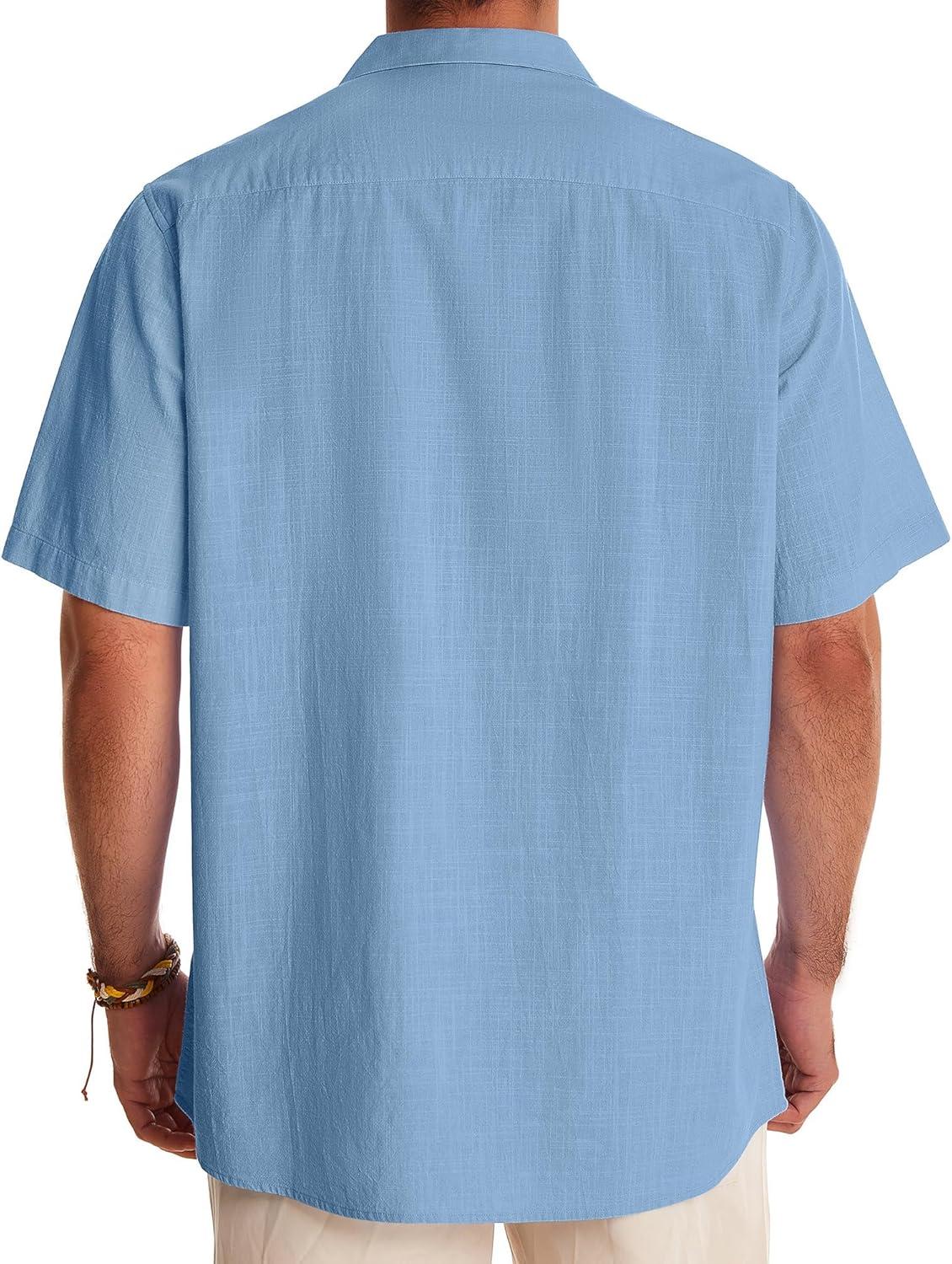 Alimens & Gentle Mens Linen Shirts Cotton Hawaiian Shirts Short Sleeve Button Down Shirts Casual Summer Beach Tops(Cool Blue)