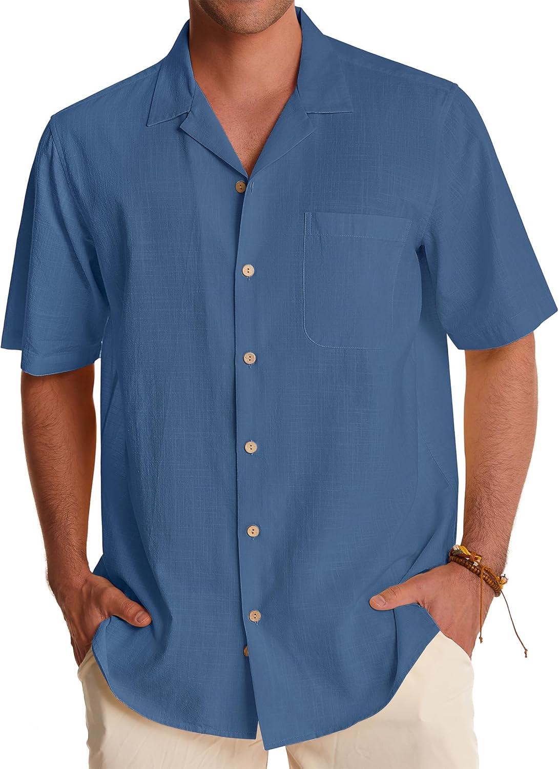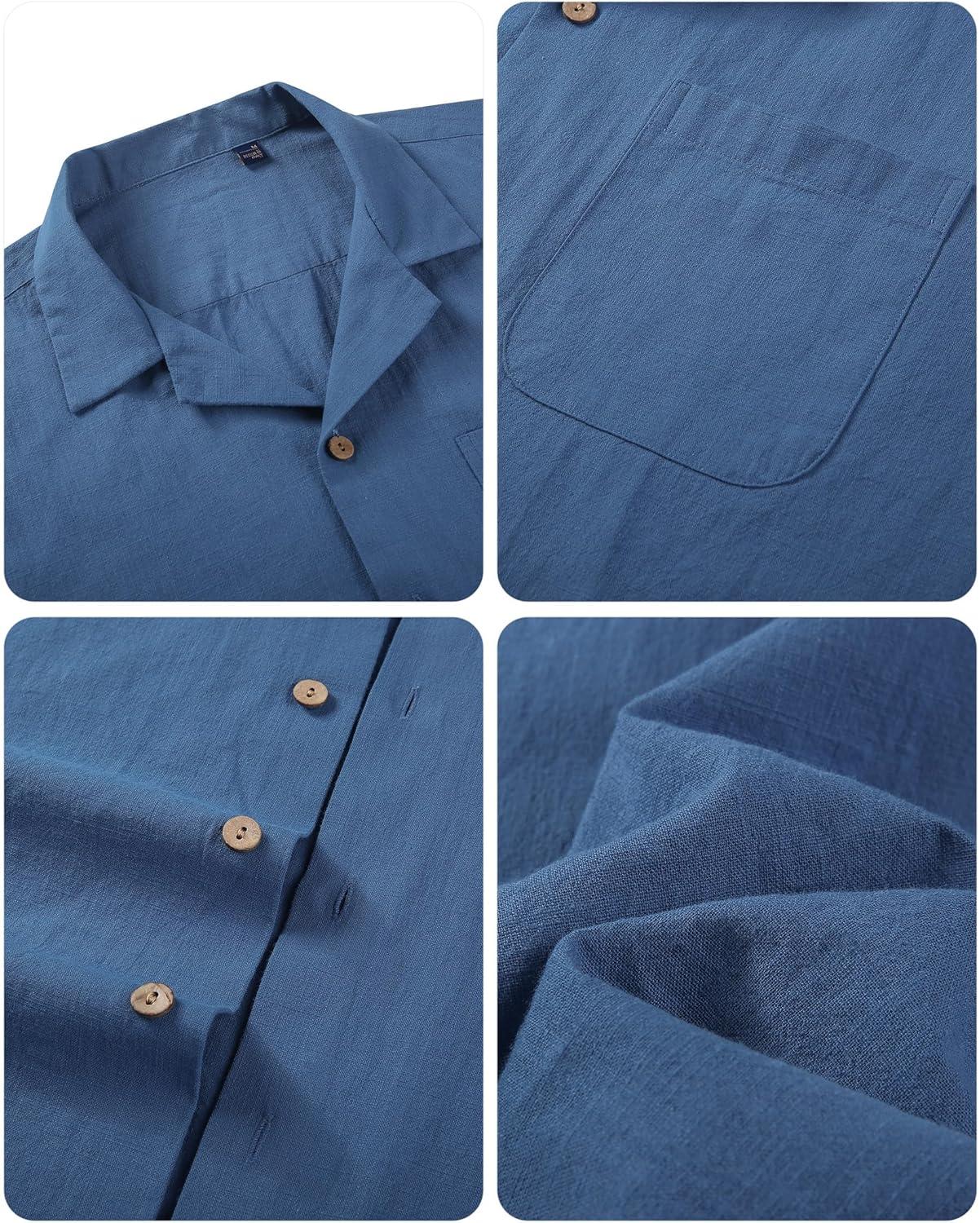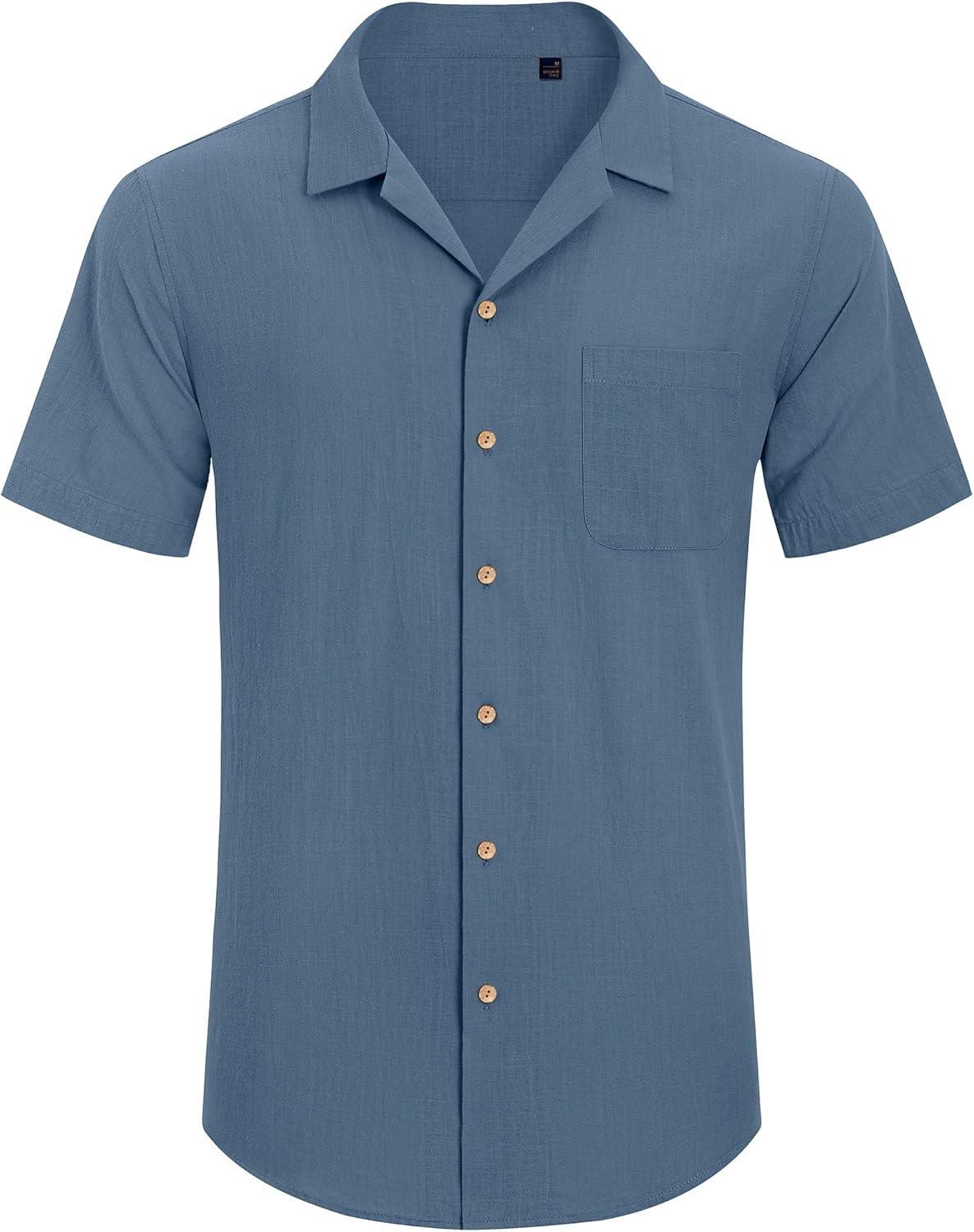 Alimens & Gentle Mens Linen Shirts Cotton Hawaiian Shirts Short Sleeve Button Down Shirts Casual Summer Beach Tops(Denim Blue)