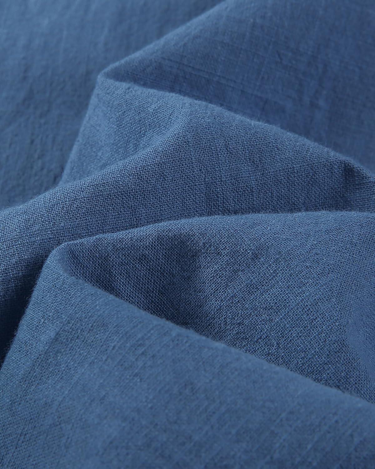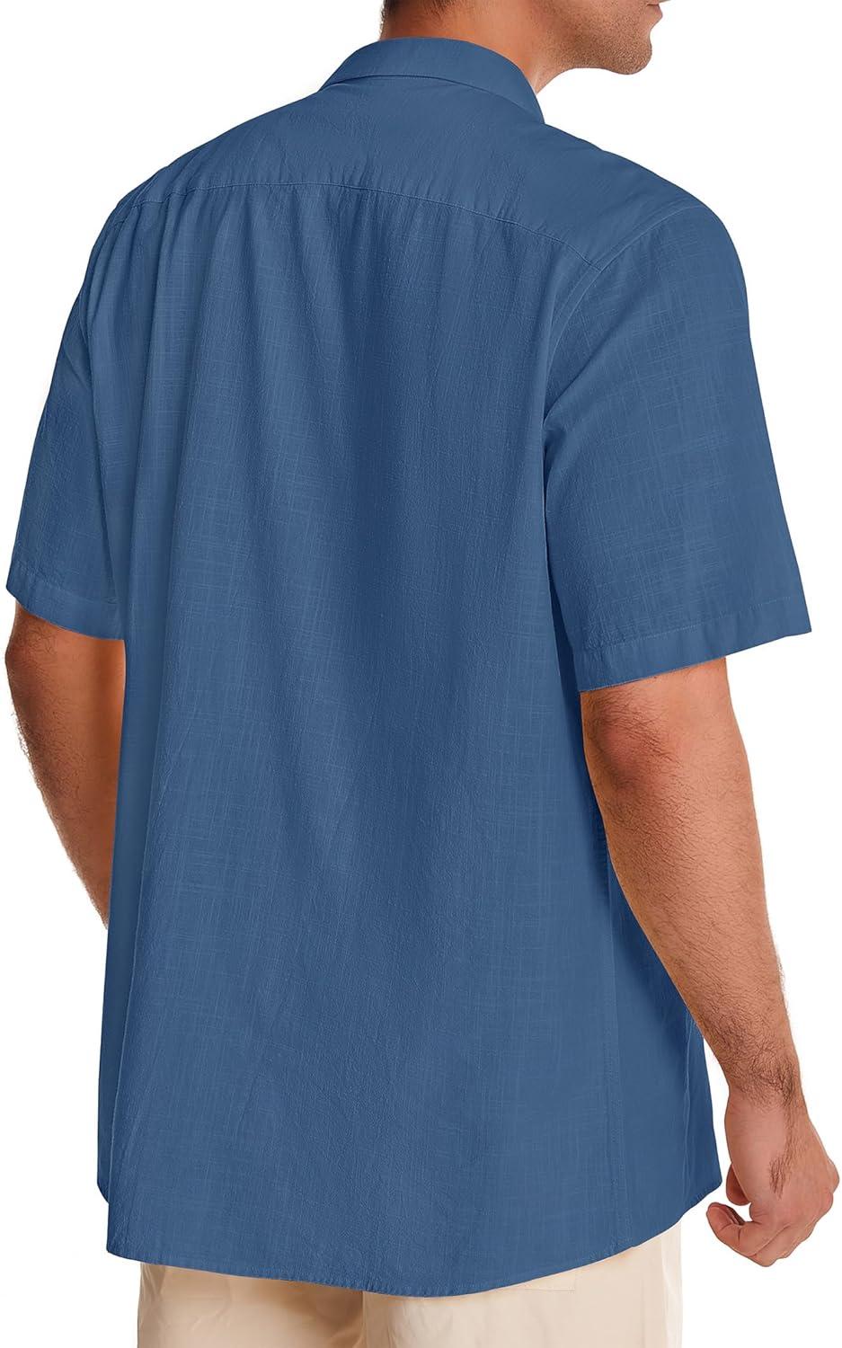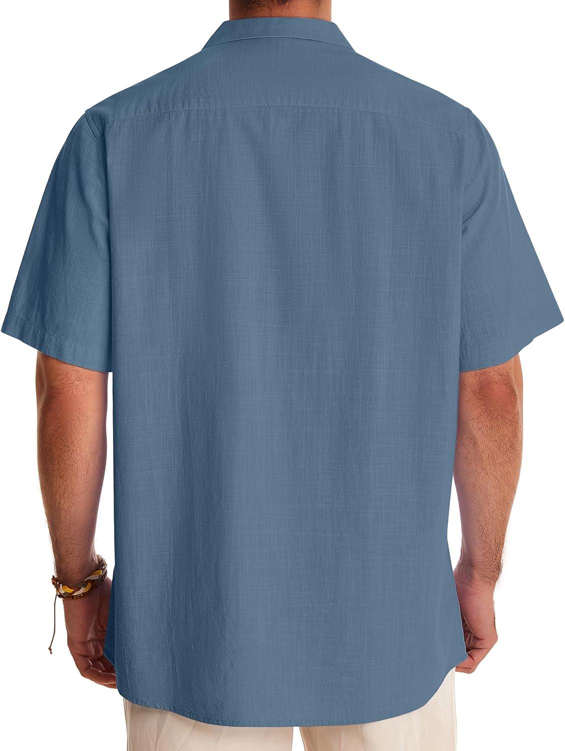 Alimens & Gentle Mens Linen Shirts Cotton Hawaiian Shirts Short Sleeve Button Down Shirts Casual Summer Beach Tops(Denim Blue)