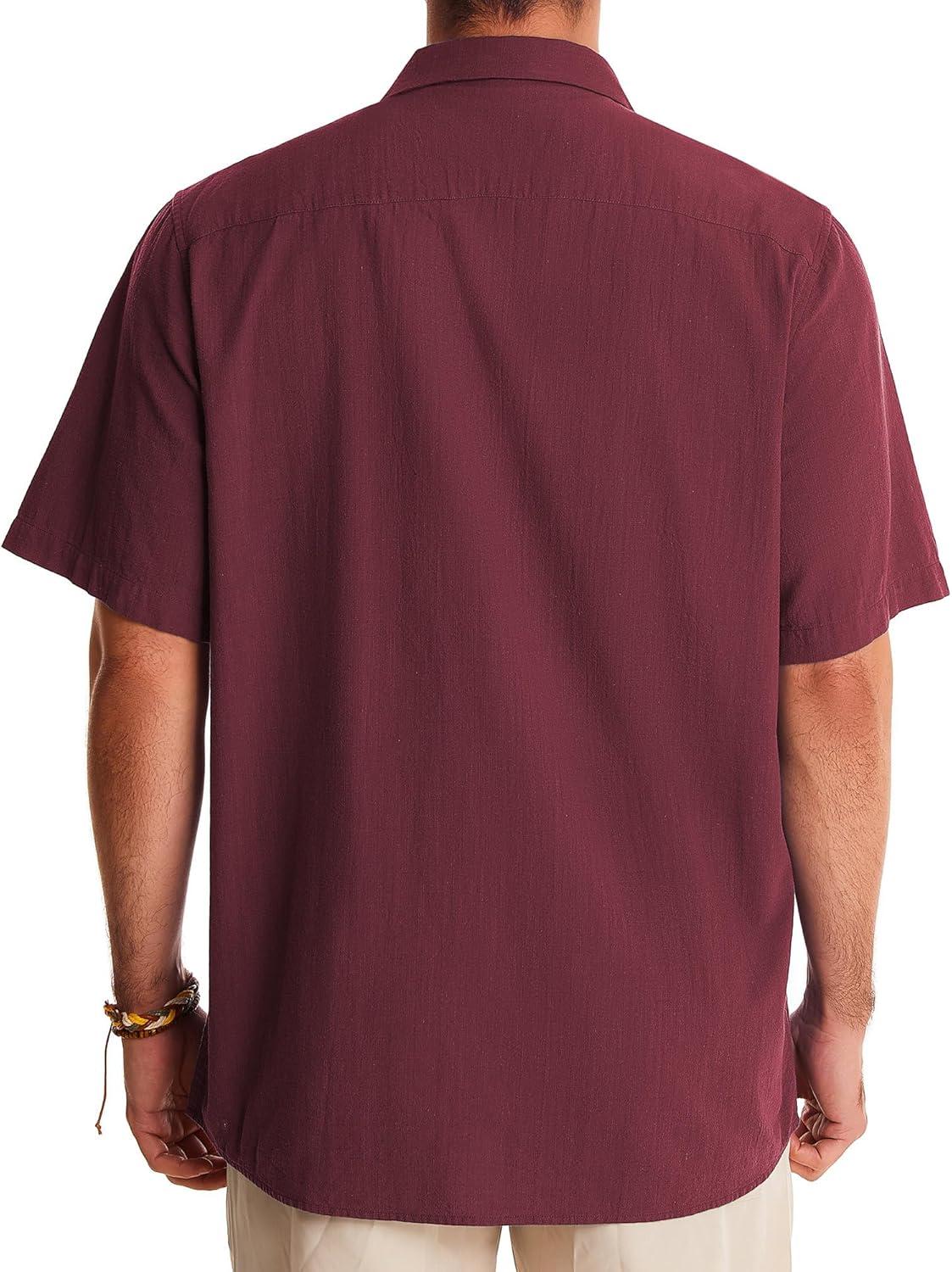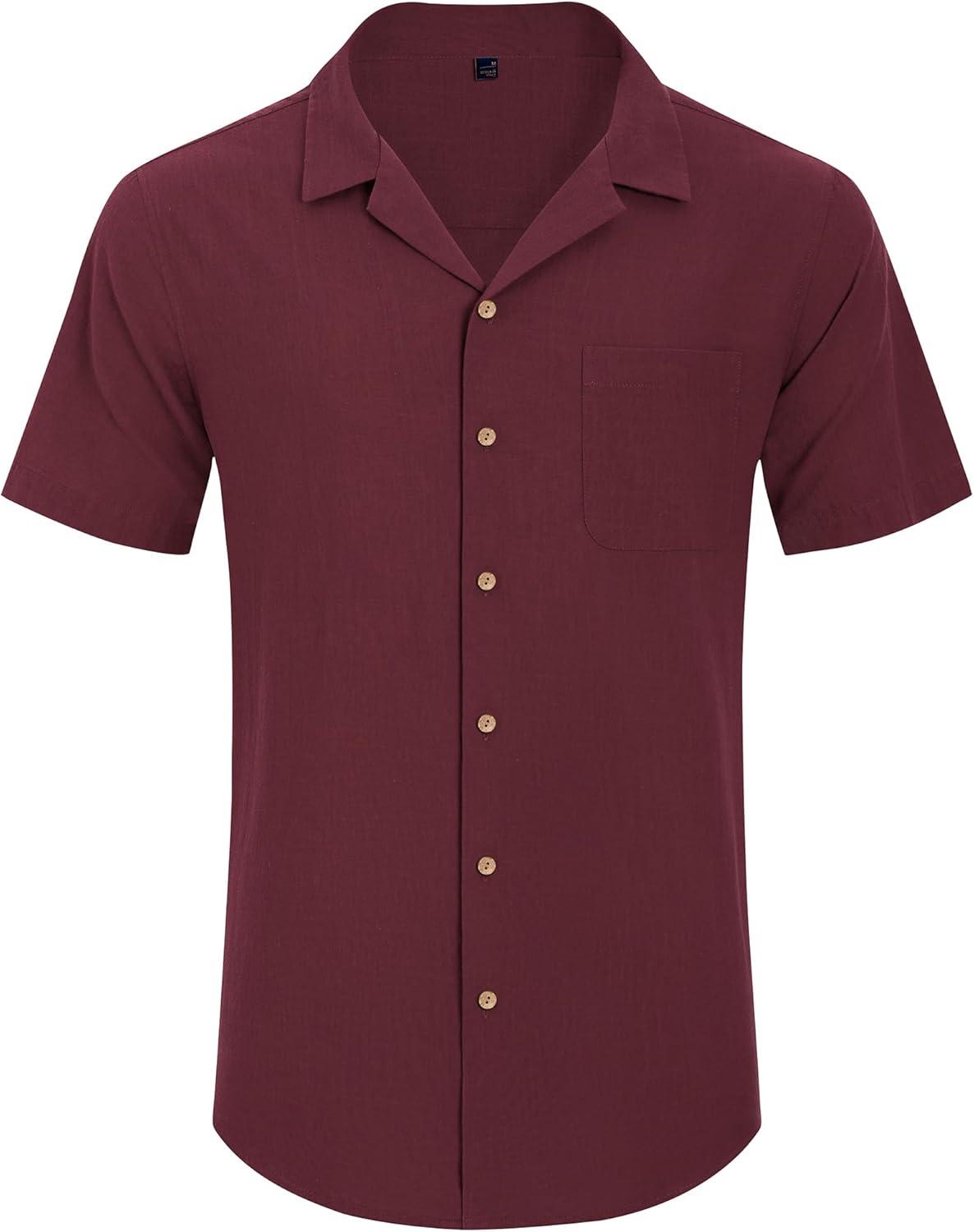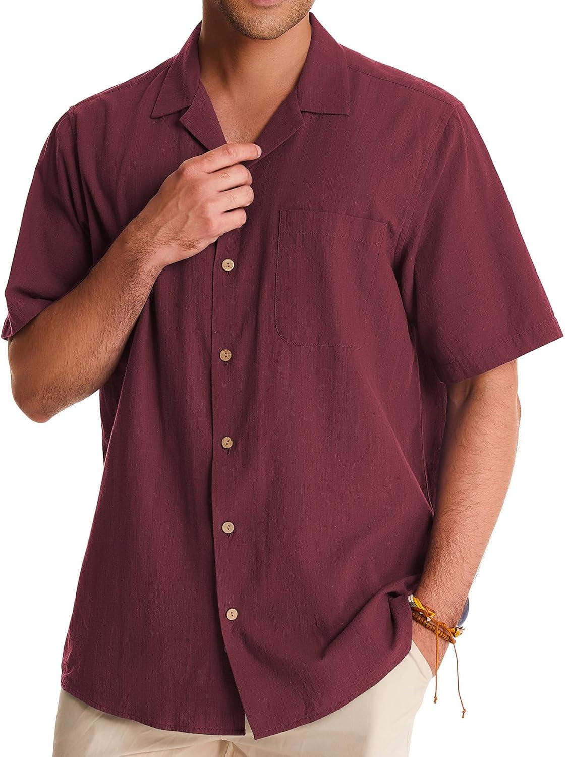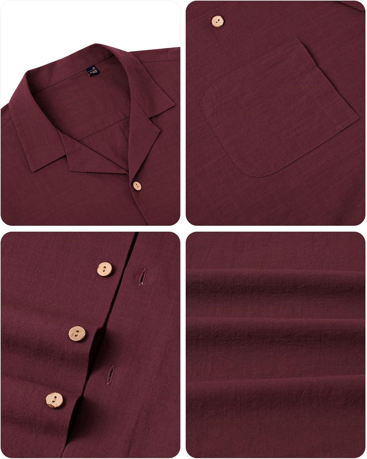 Alimens & Gentle Mens Linen Shirts Cotton Hawaiian Shirts Short Sleeve Button Down Shirts Casual Summer Beach Tops(Burgundy)