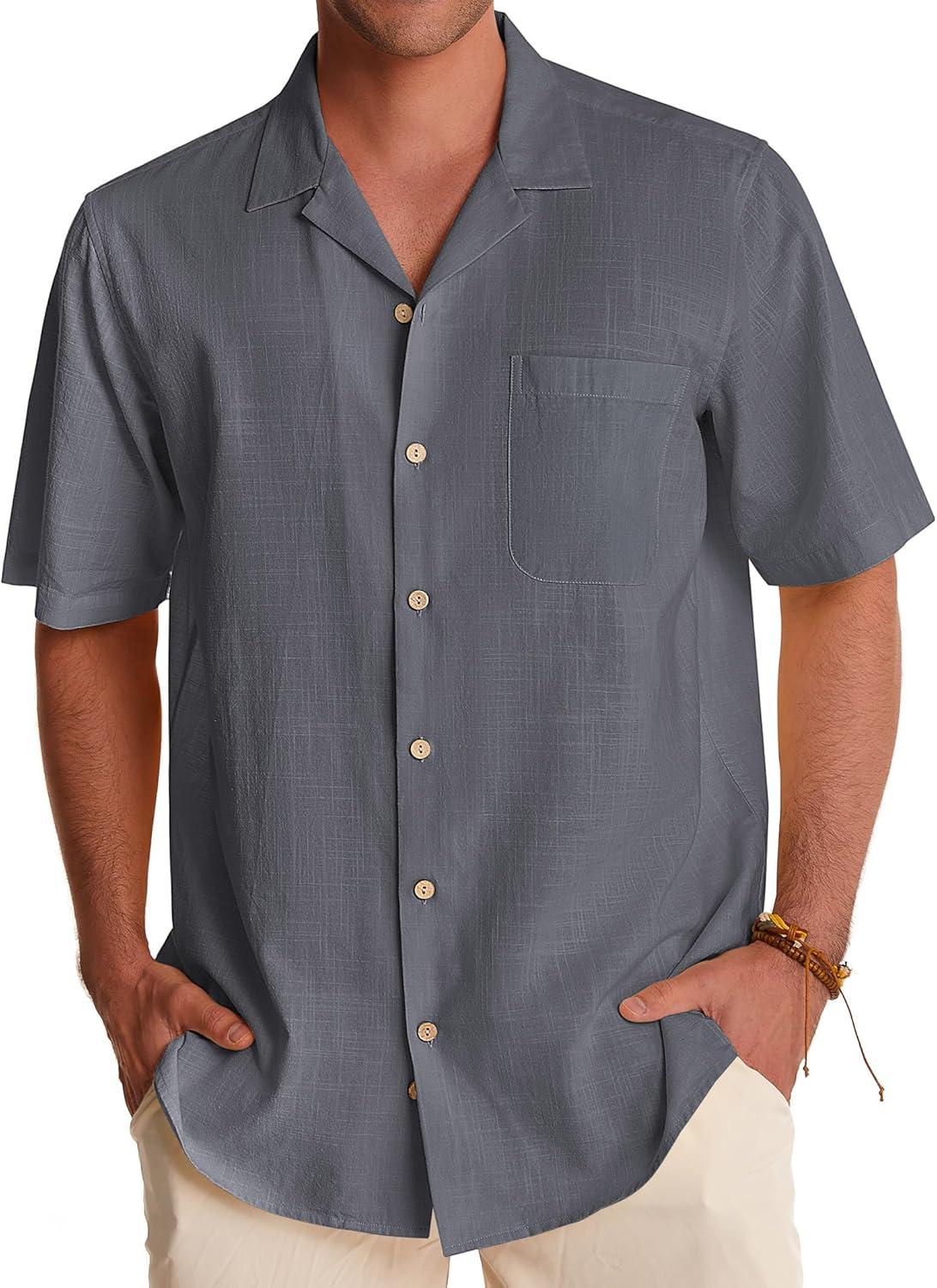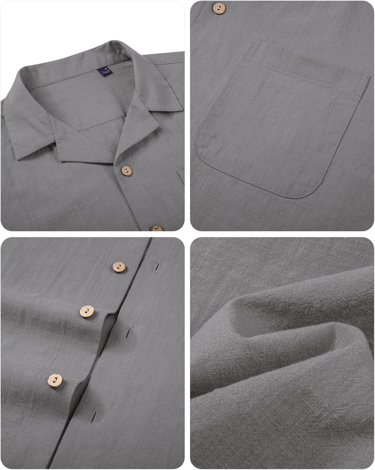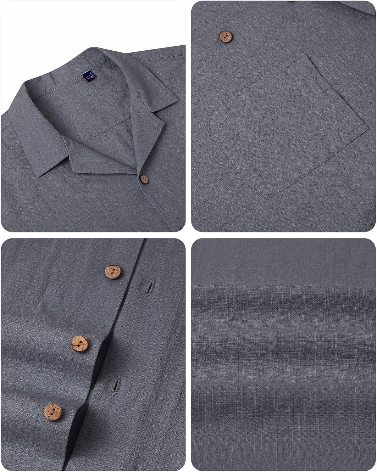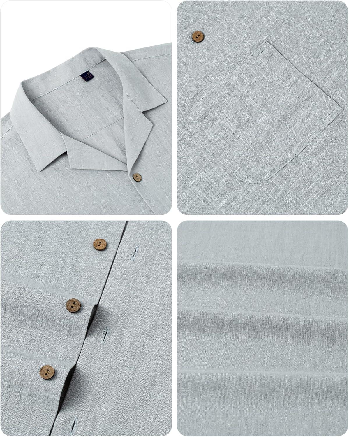 Alimens & Gentle Mens Linen Shirts Cotton Hawaiian Shirts Short Sleeve Button Down Shirts Casual Summer Beach Tops(Cool Grey)