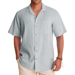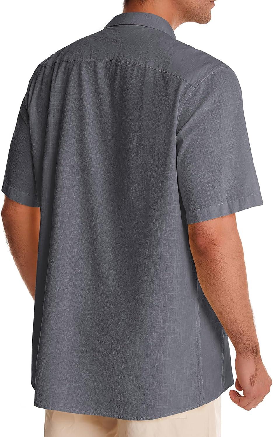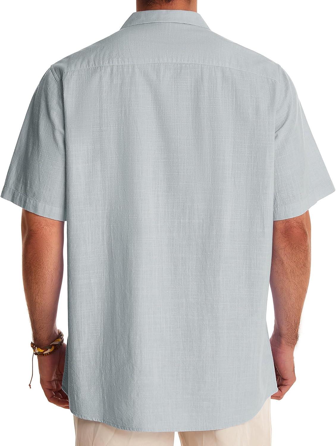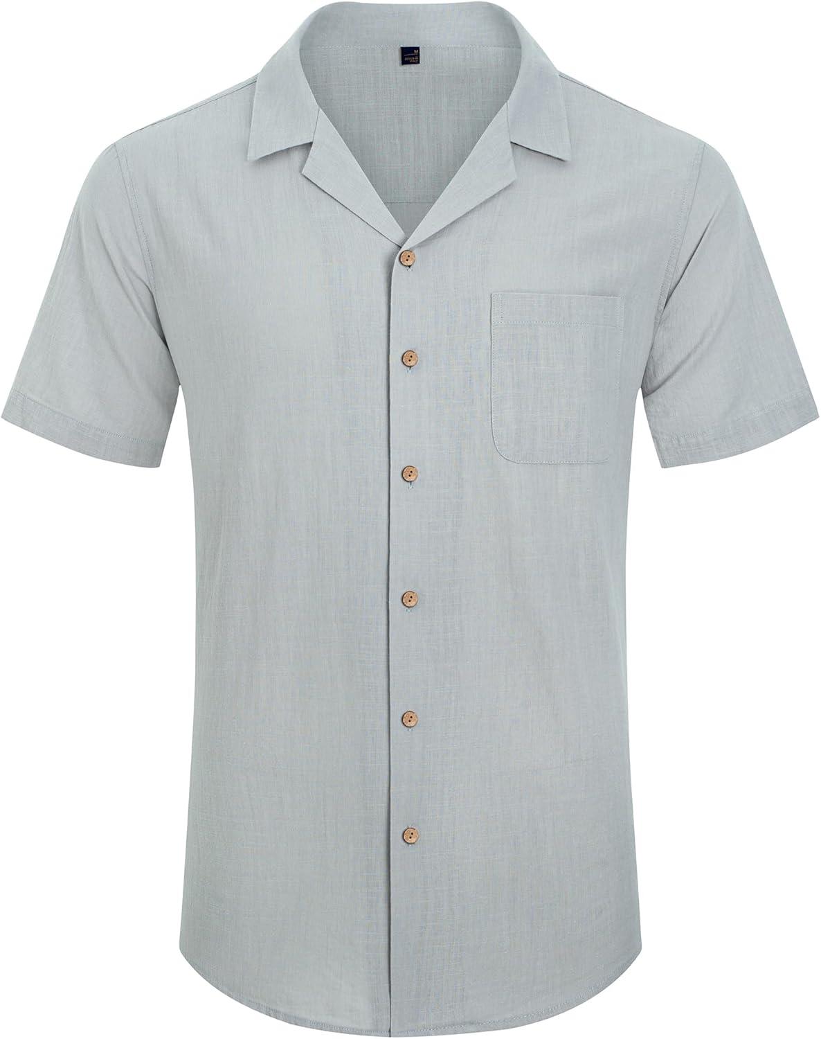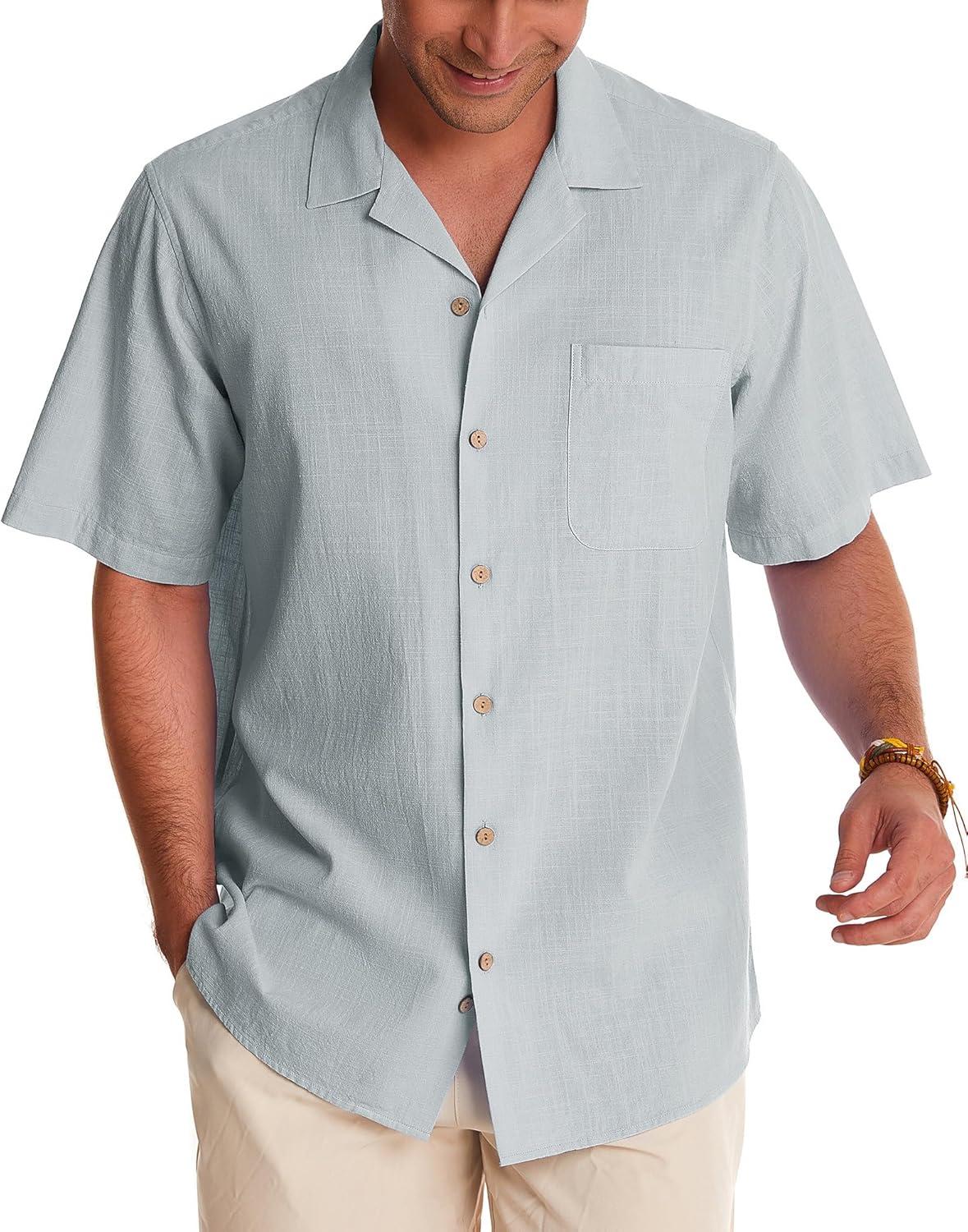Alimens & Gentle Mens Linen Shirts Cotton Hawaiian Shirts Short Sleeve Button Down Shirts Casual Summer Beach Tops(Cool Grey)