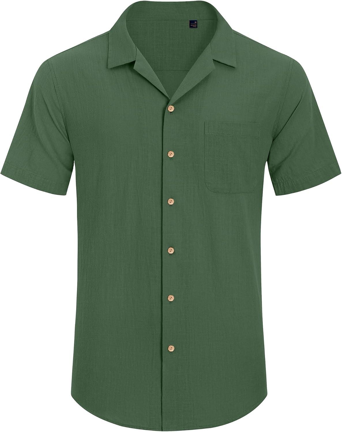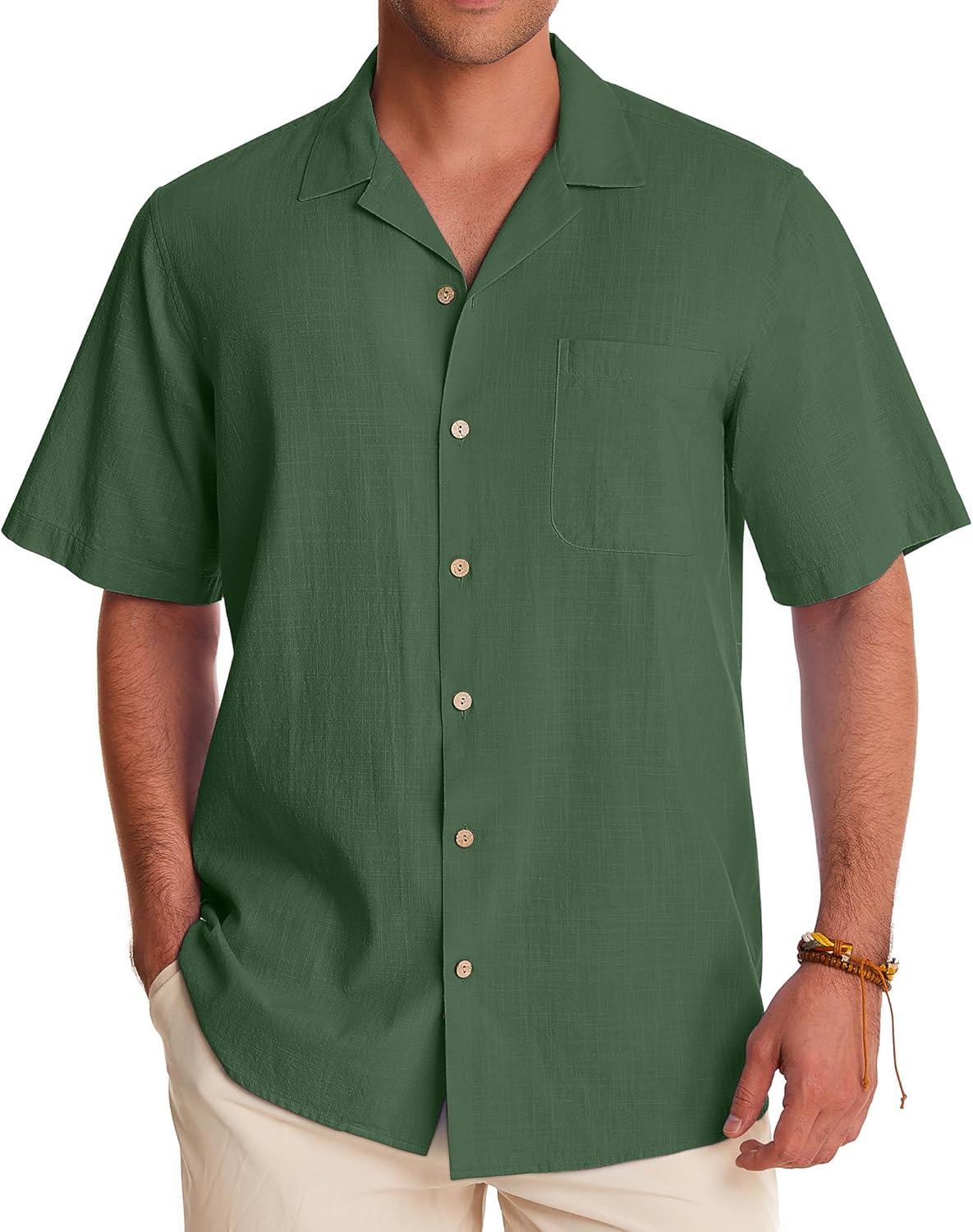 Alimens & Gentle Mens Linen Shirts Cotton Hawaiian Shirts Short Sleeve Button Down Shirts Casual Summer Beach Tops(Eden)