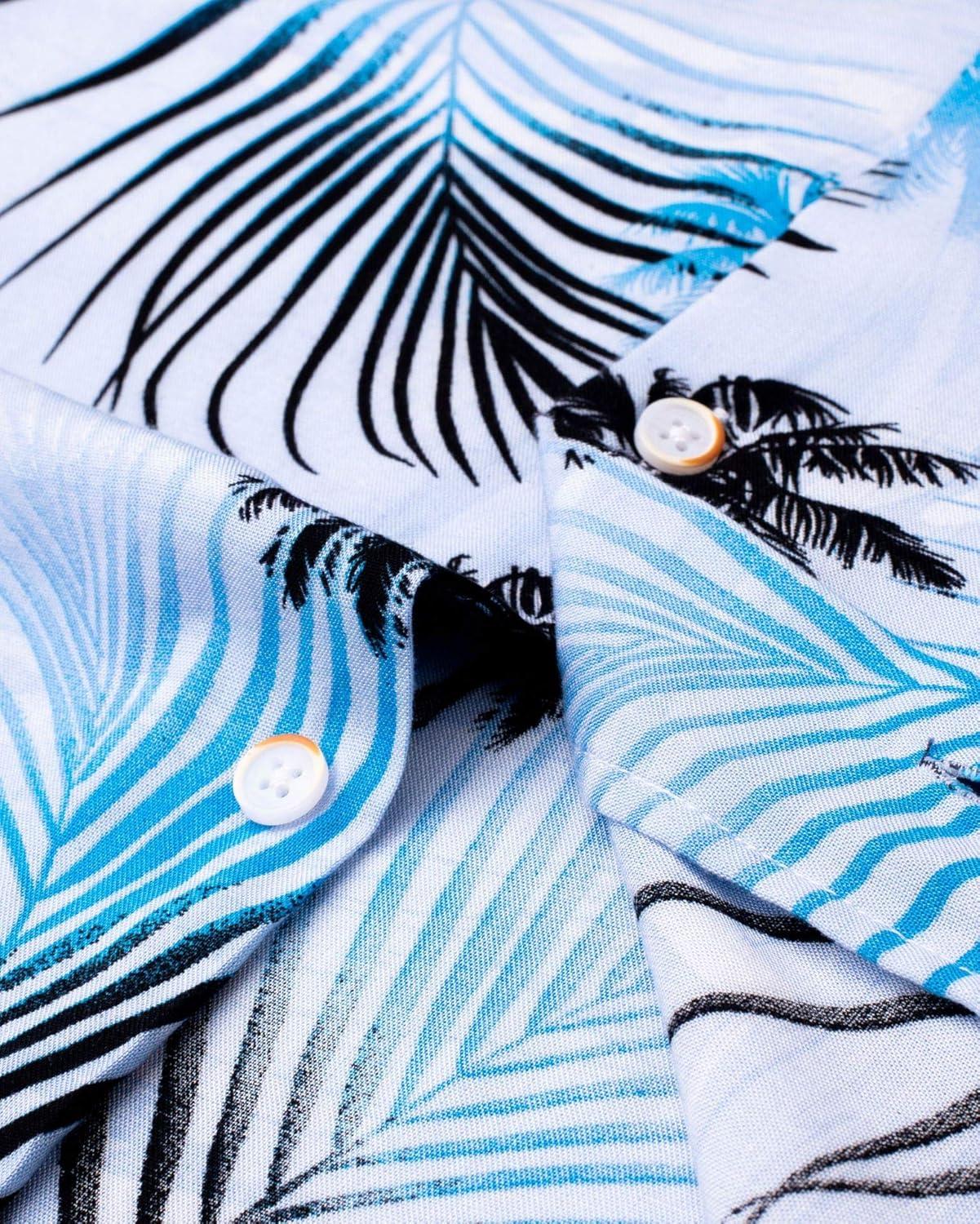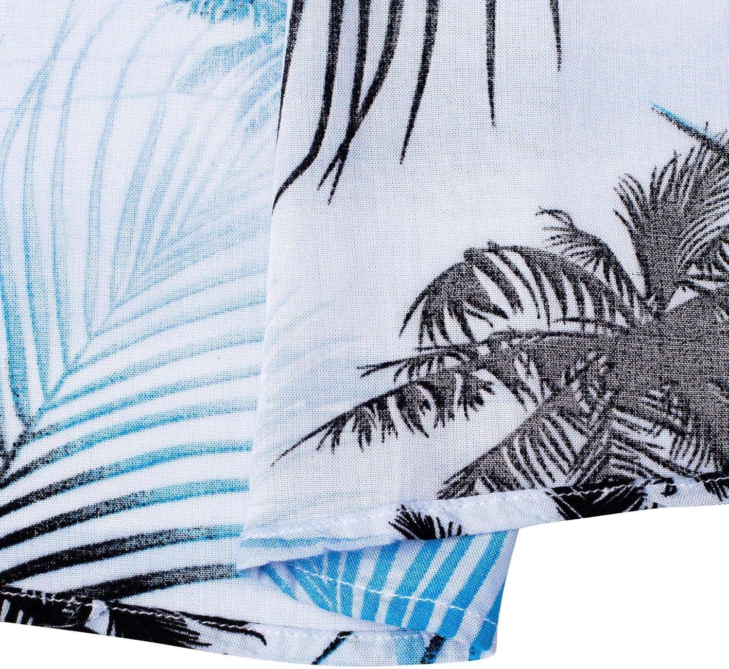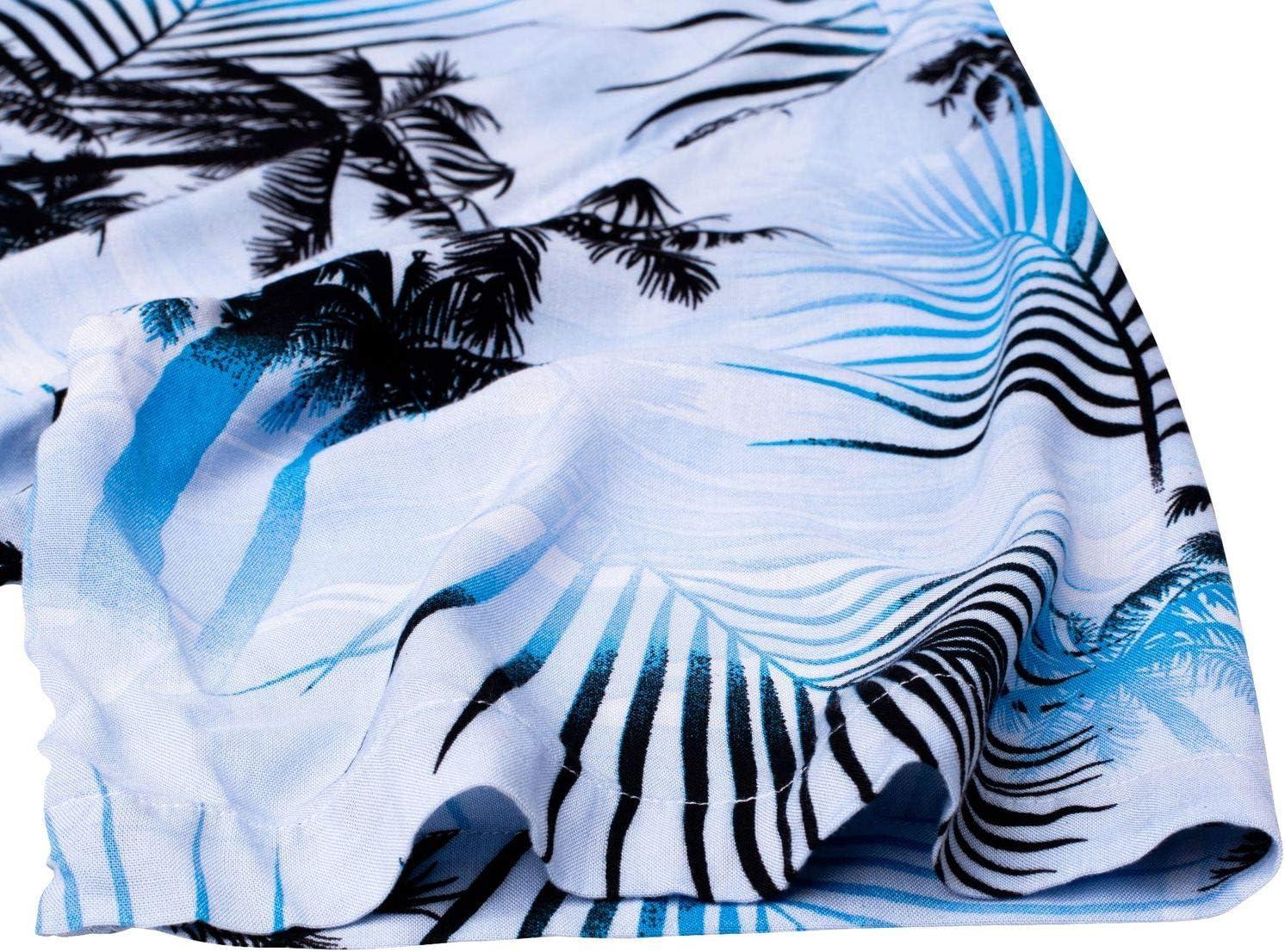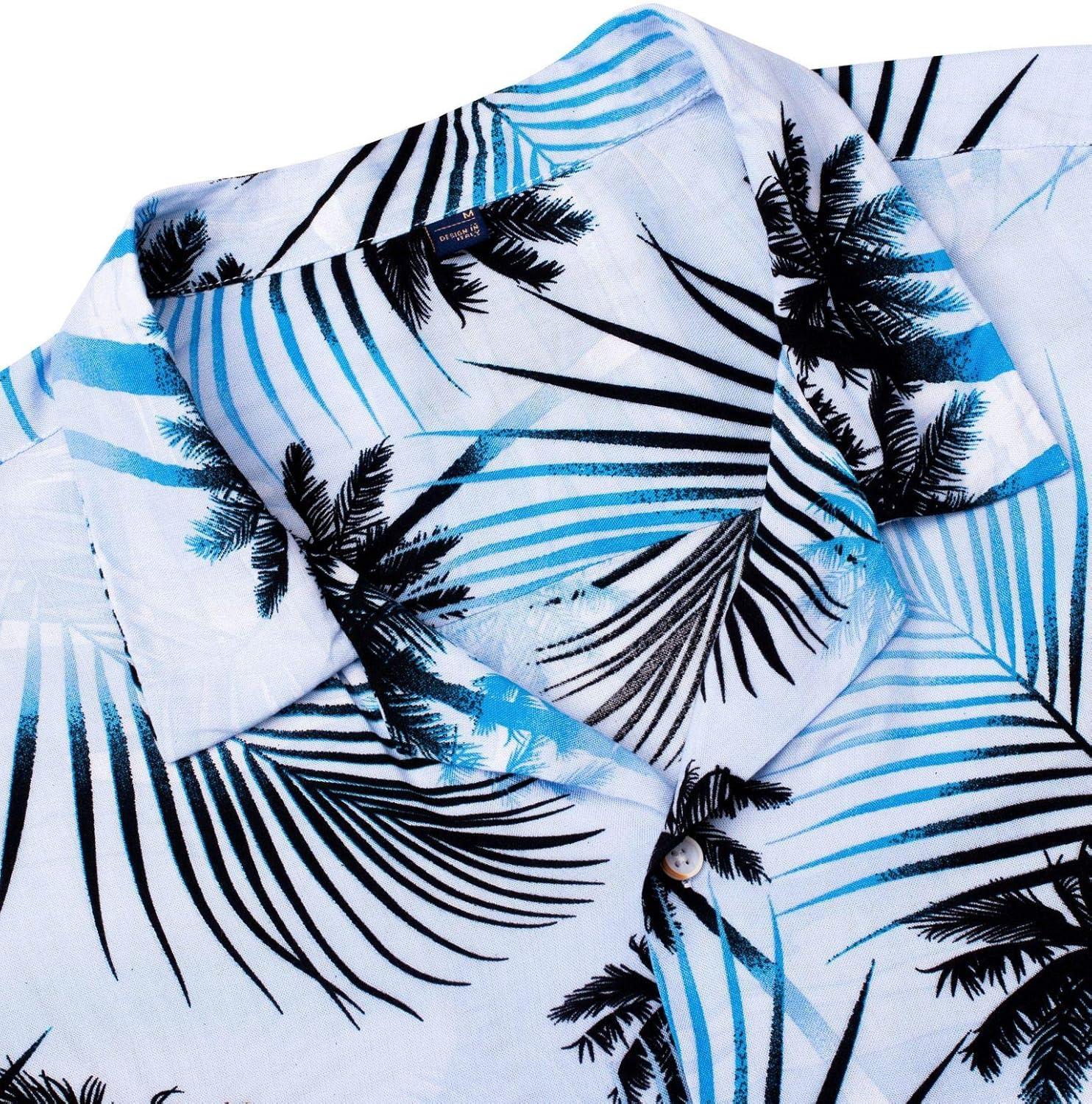 Alimens & Gentle Hawaiian Shirt for Men Summer Beach Casual Short Sleeve Button Down Shirts Printed Tropical Vacation Shirts(Blue White Palm)