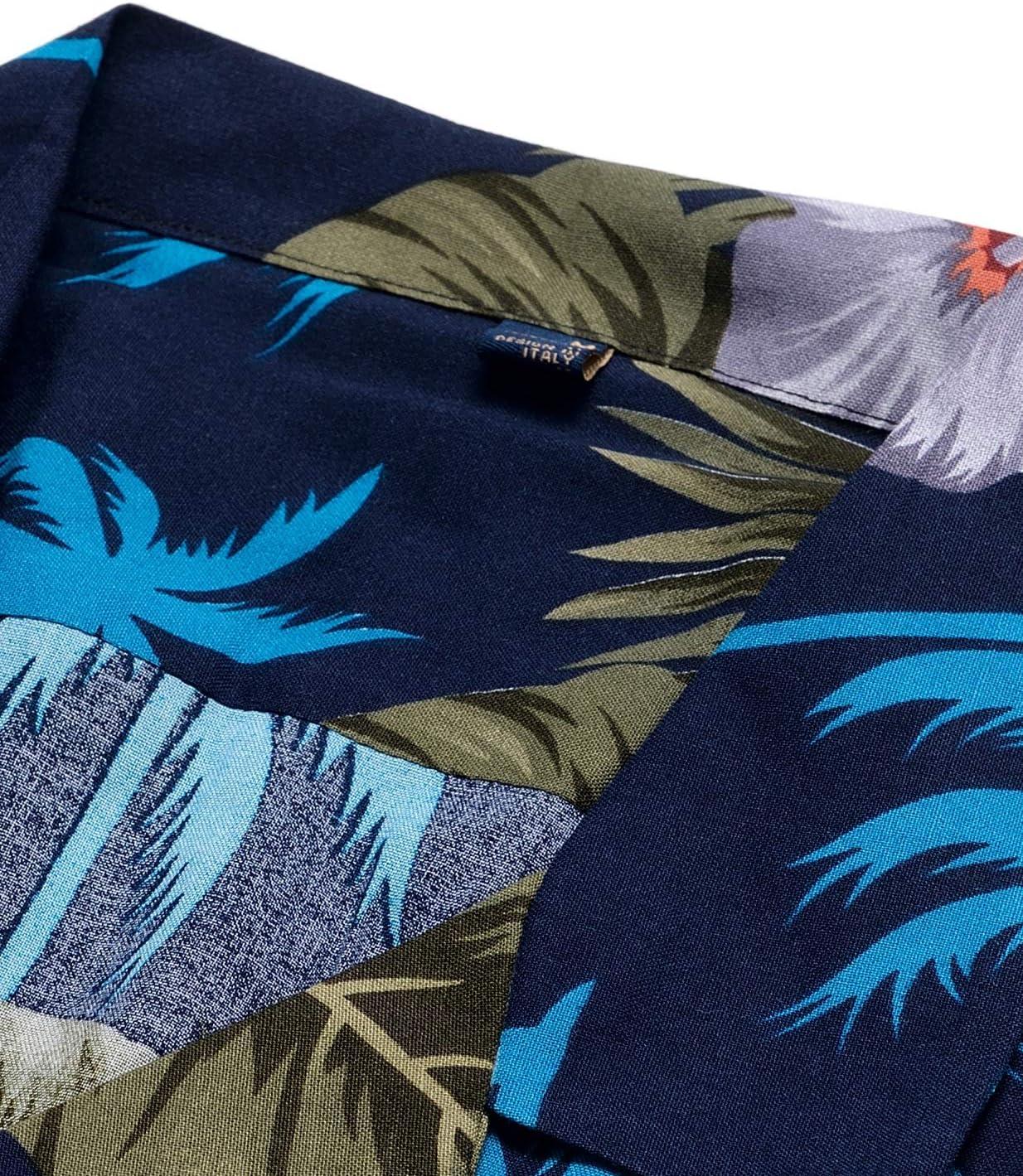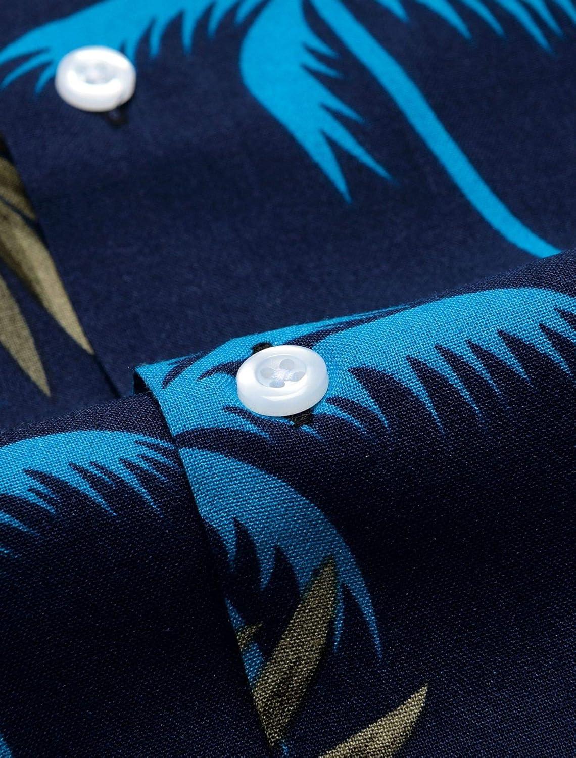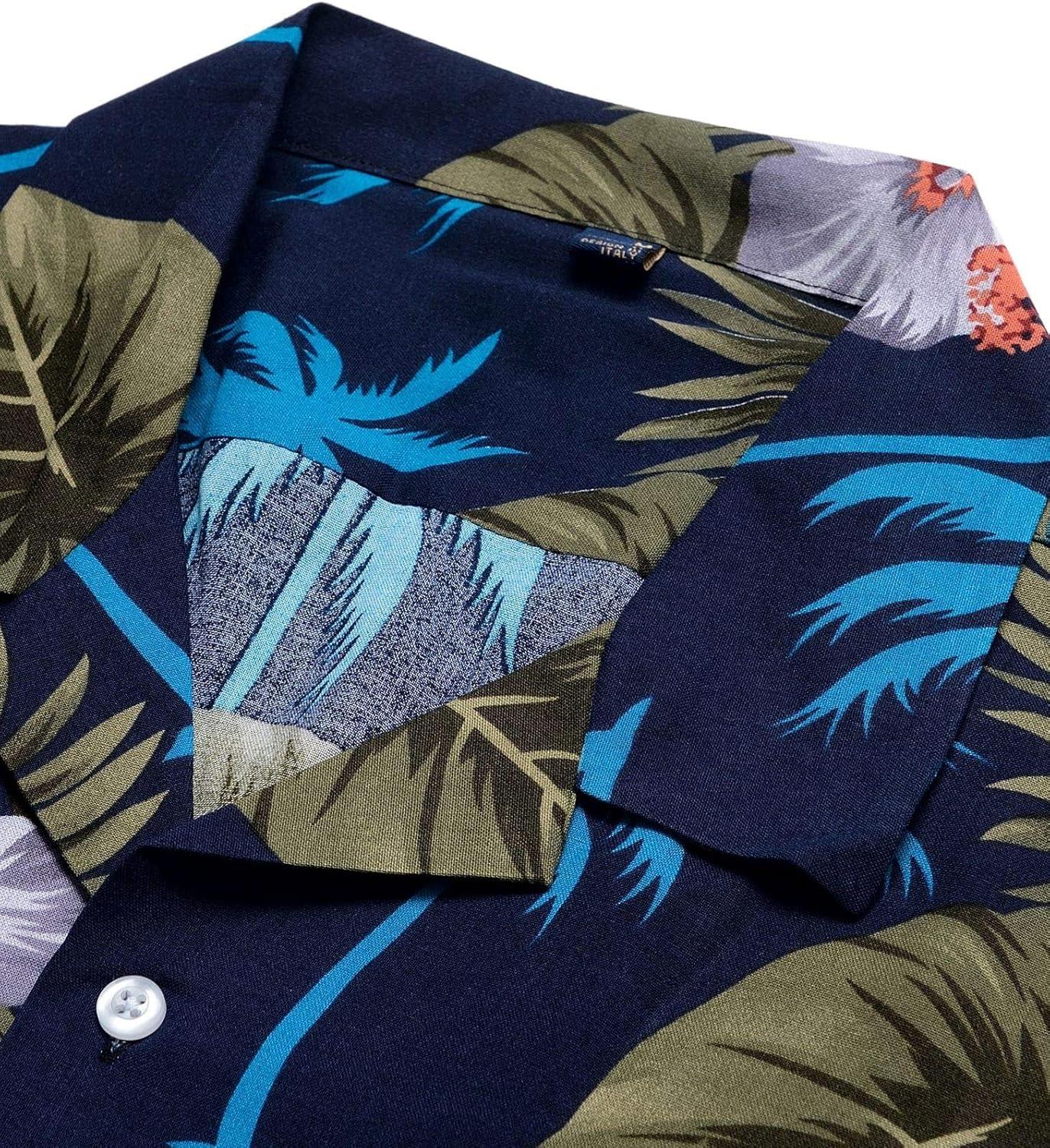 Alimens & Gentle Hawaiian Shirt for Men Summer Beach Casual Short Sleeve Button Down Shirts Printed Tropical Vacation Shirts(Navy Blue)