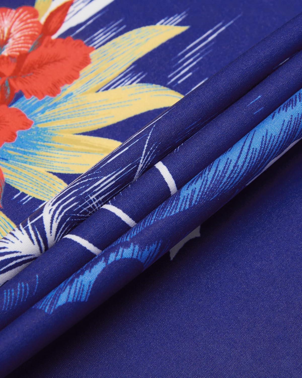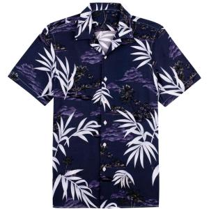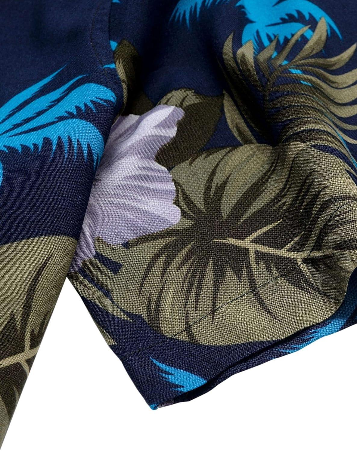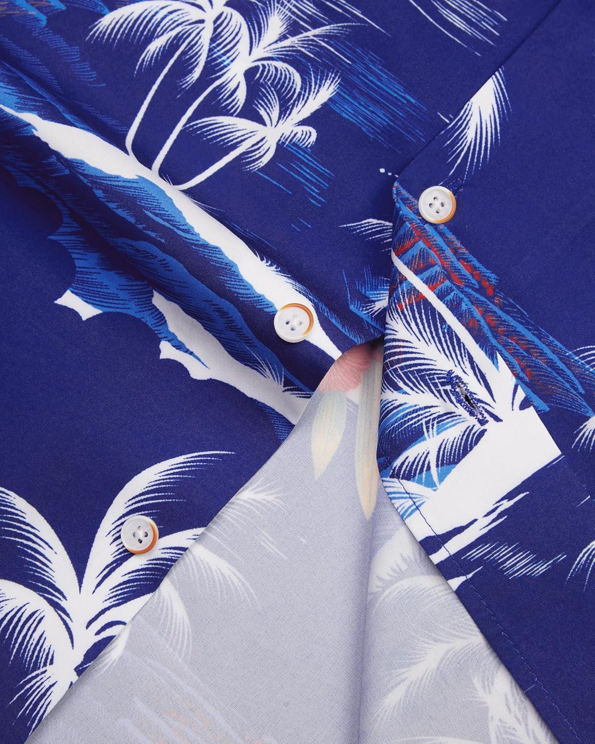 Alimens & Gentle Hawaiian Shirt for Men Summer Beach Casual Short Sleeve Button Down Shirts Printed Tropical Vacation Shirts(Navy Blue)