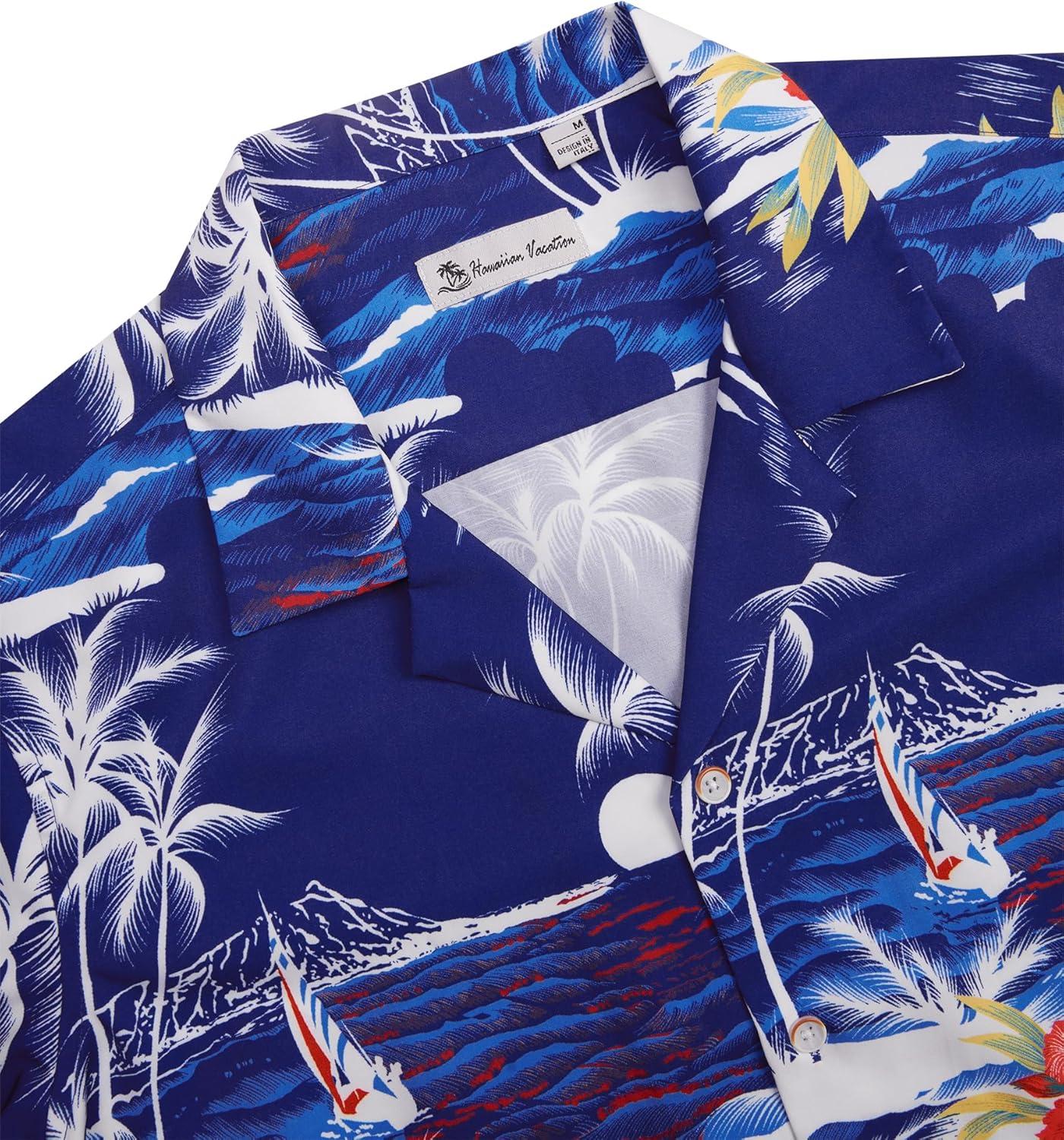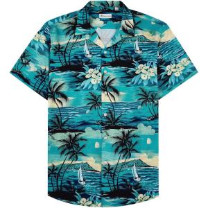 Alimens & Gentle Hawaiian Shirt for Men Summer Beach Casual Short Sleeve Button Down Shirts Printed Tropical Vacation Shirts(Blue Beach)