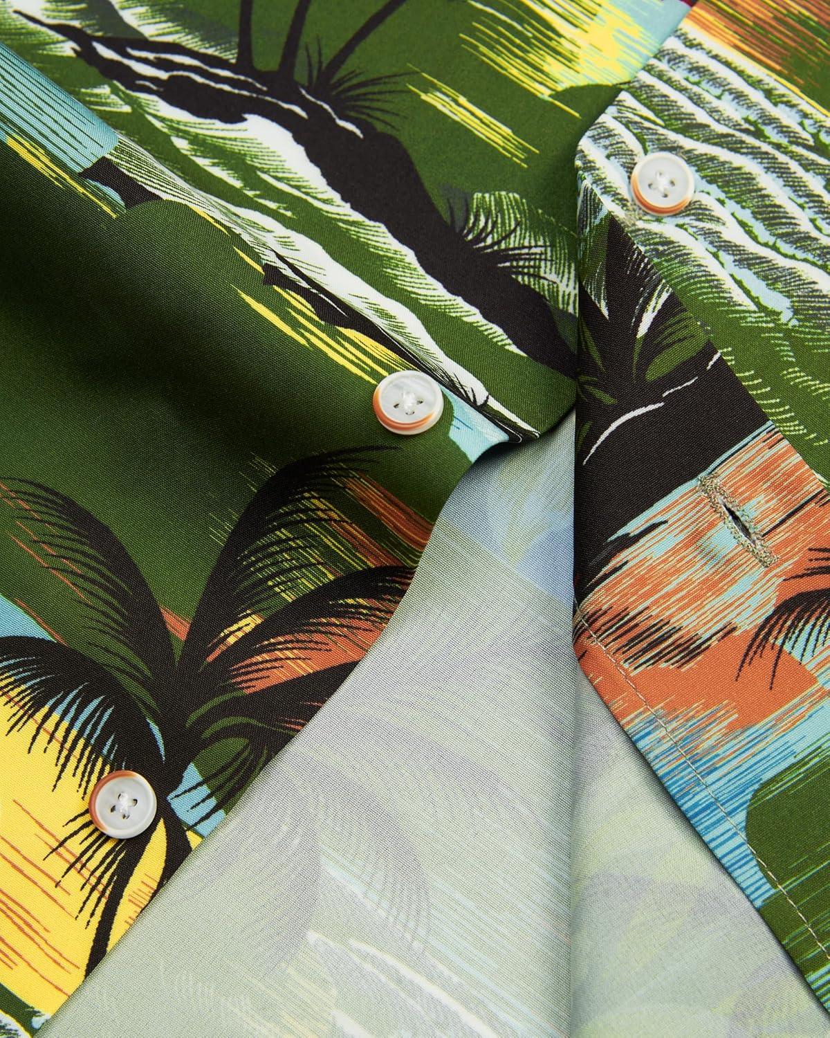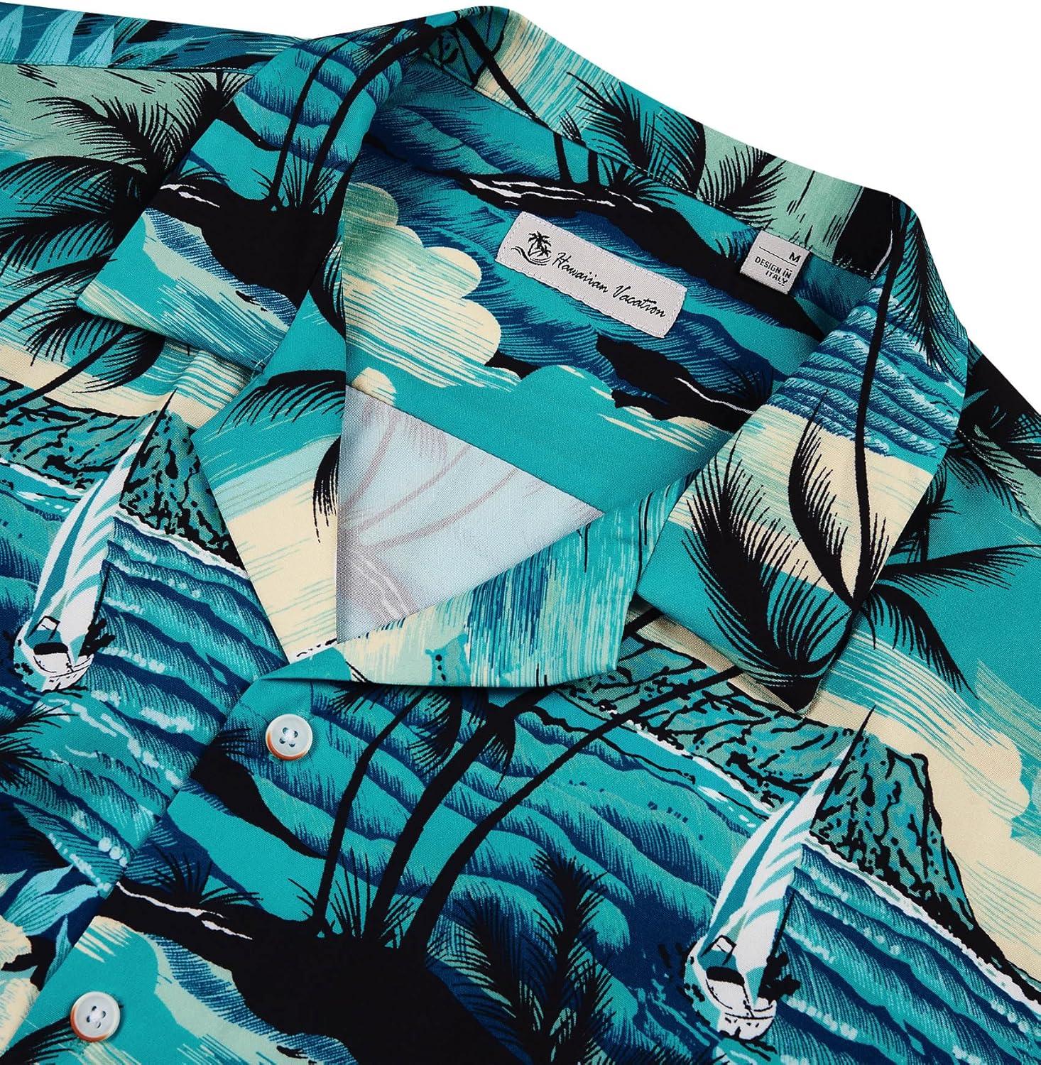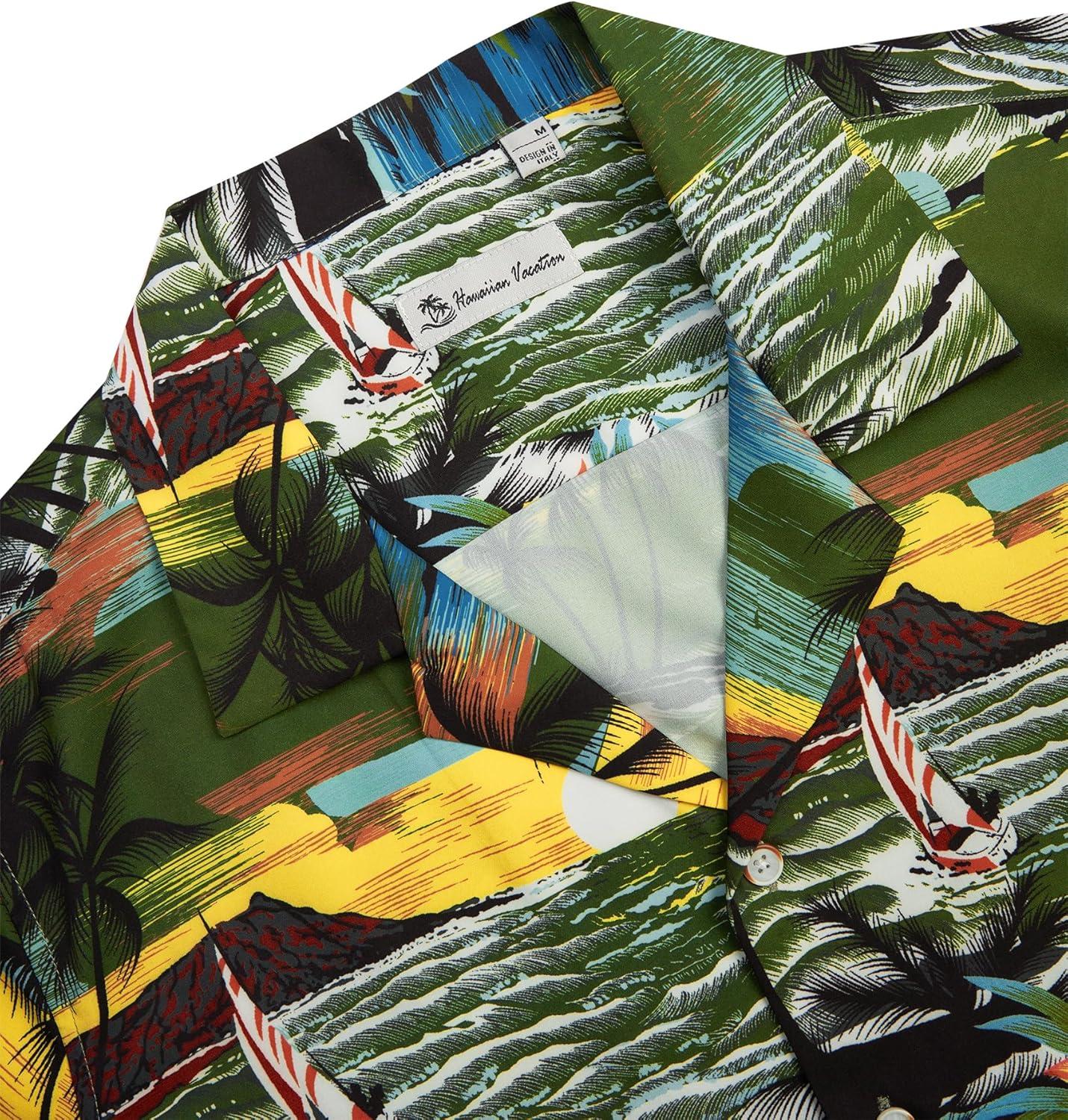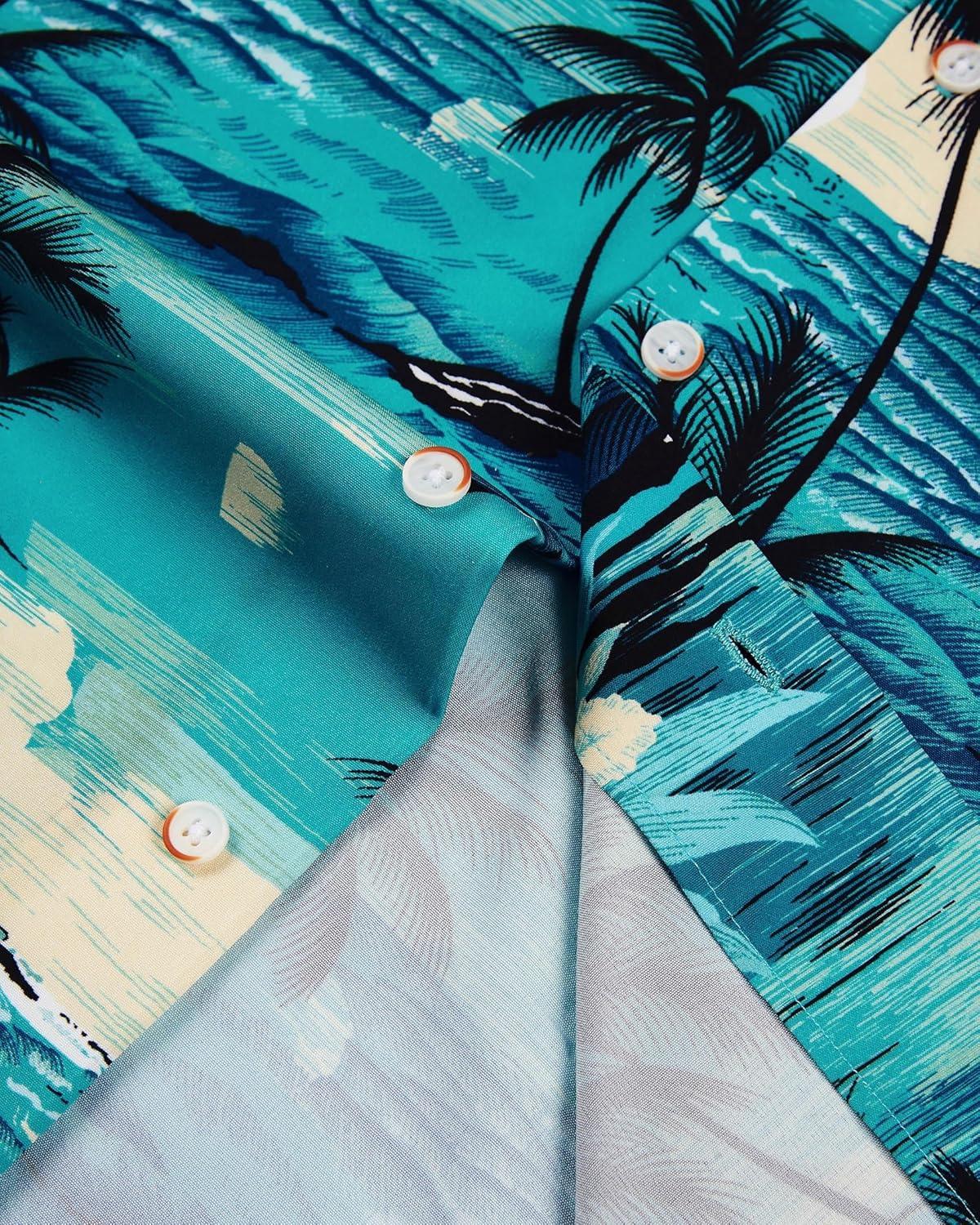 Alimens & Gentle Hawaiian Shirt for Men Summer Beach Casual Short Sleeve Button Down Shirts Printed Tropical Vacation Shirts(Dark Green Beach)
