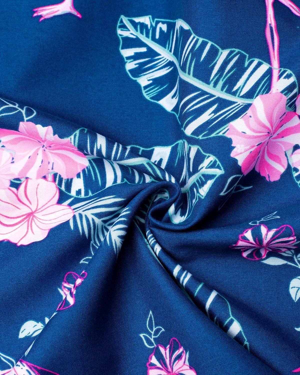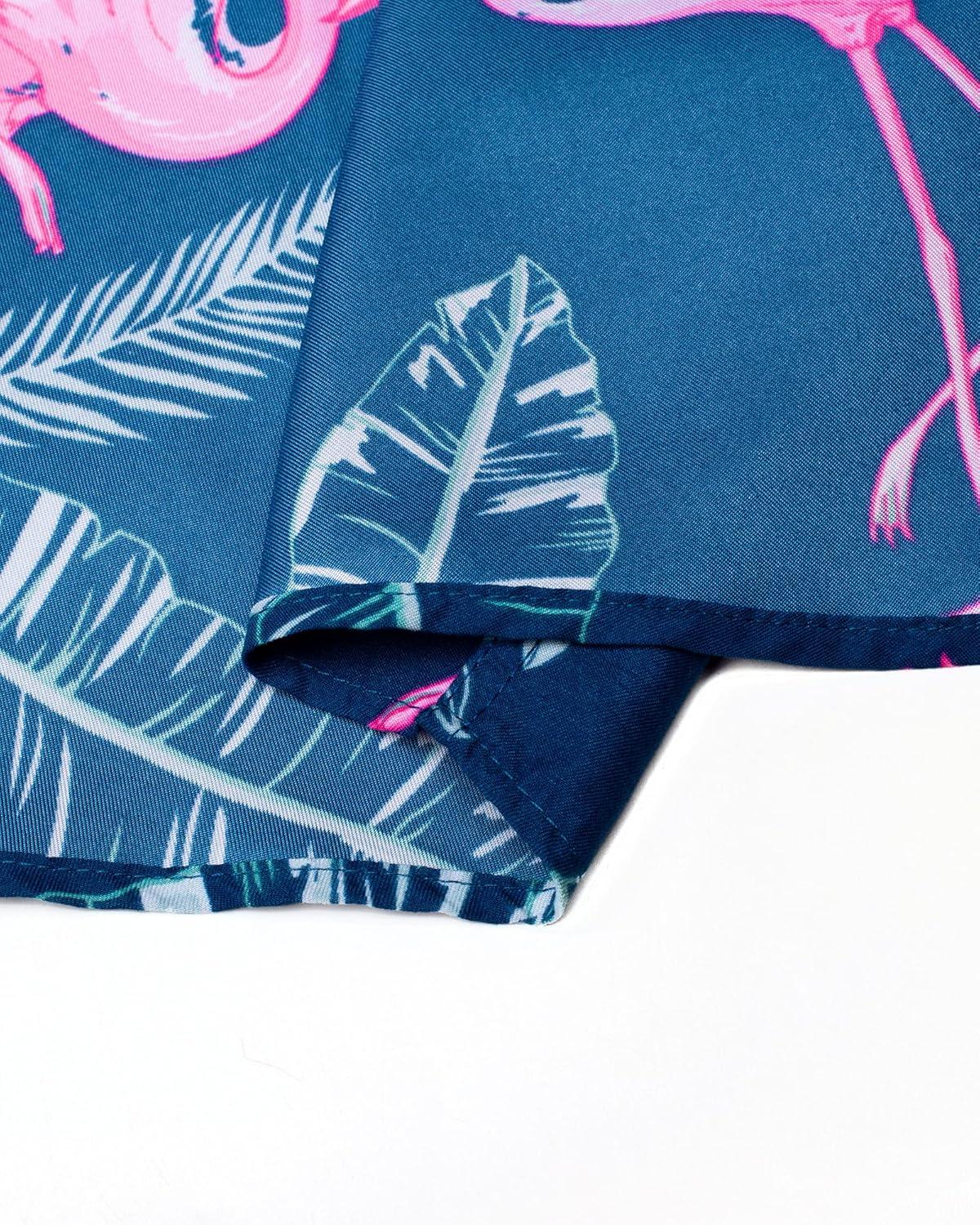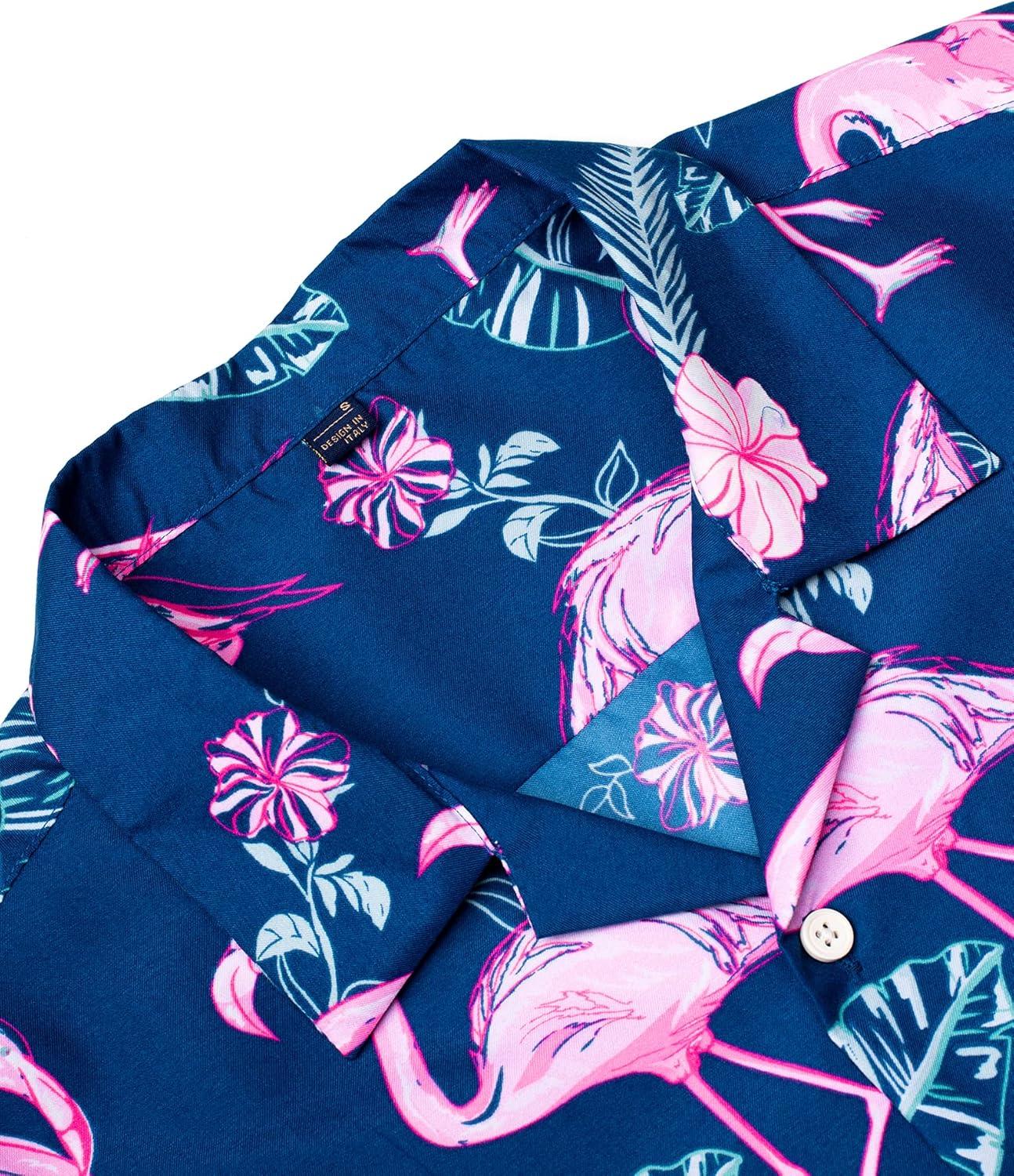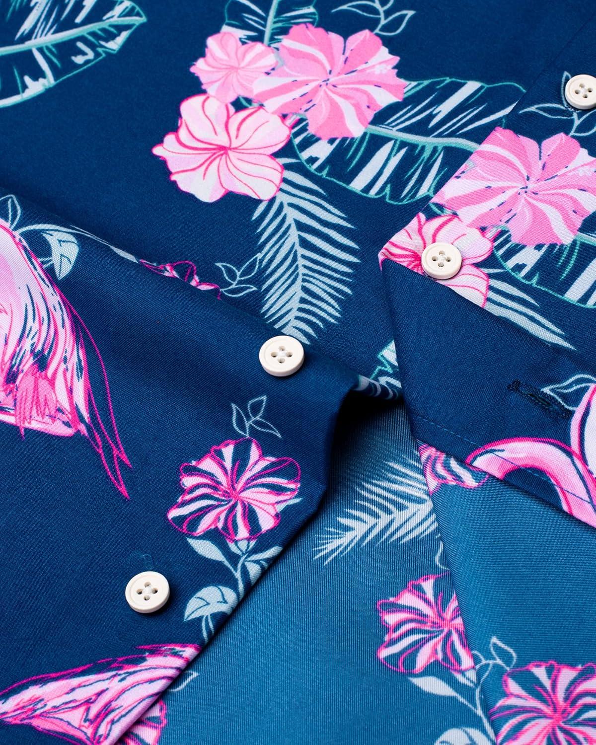 Alimens & Gentle Hawaiian Shirt for Men Summer Beach Casual Short Sleeve Button Down Shirts Printed Tropical Vacation Shirts(Navy Rosy)