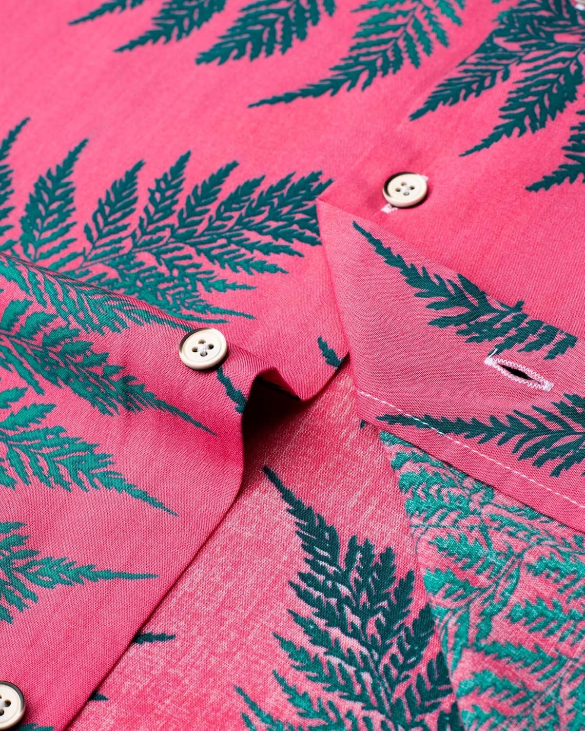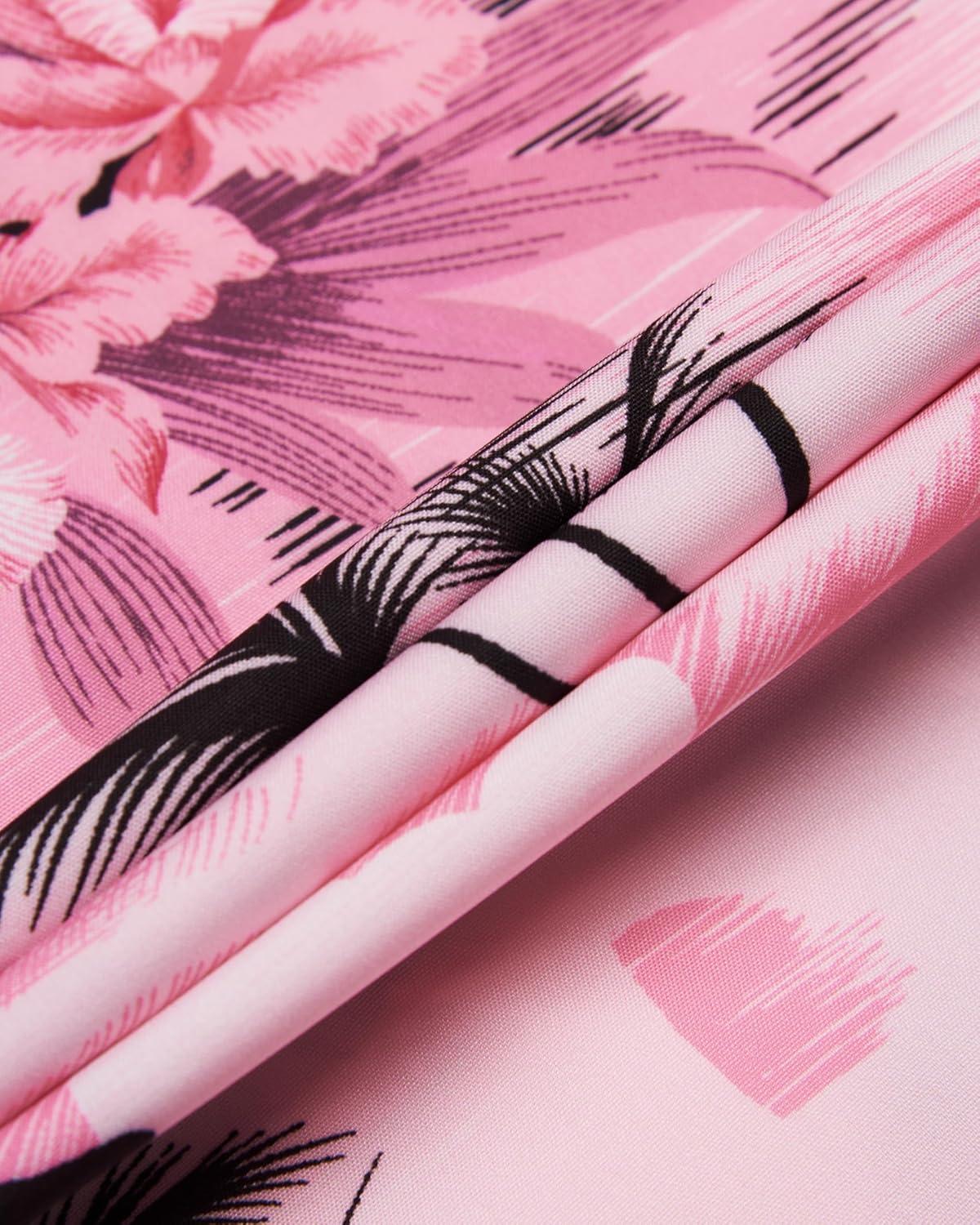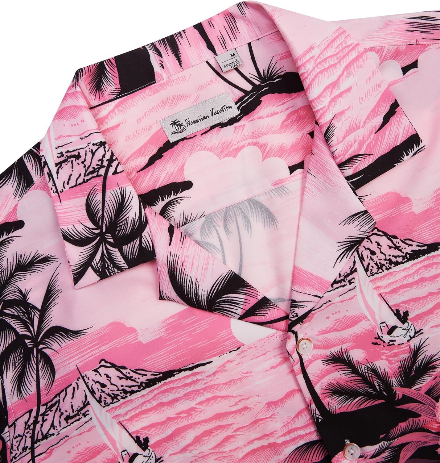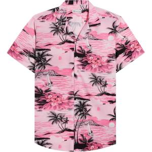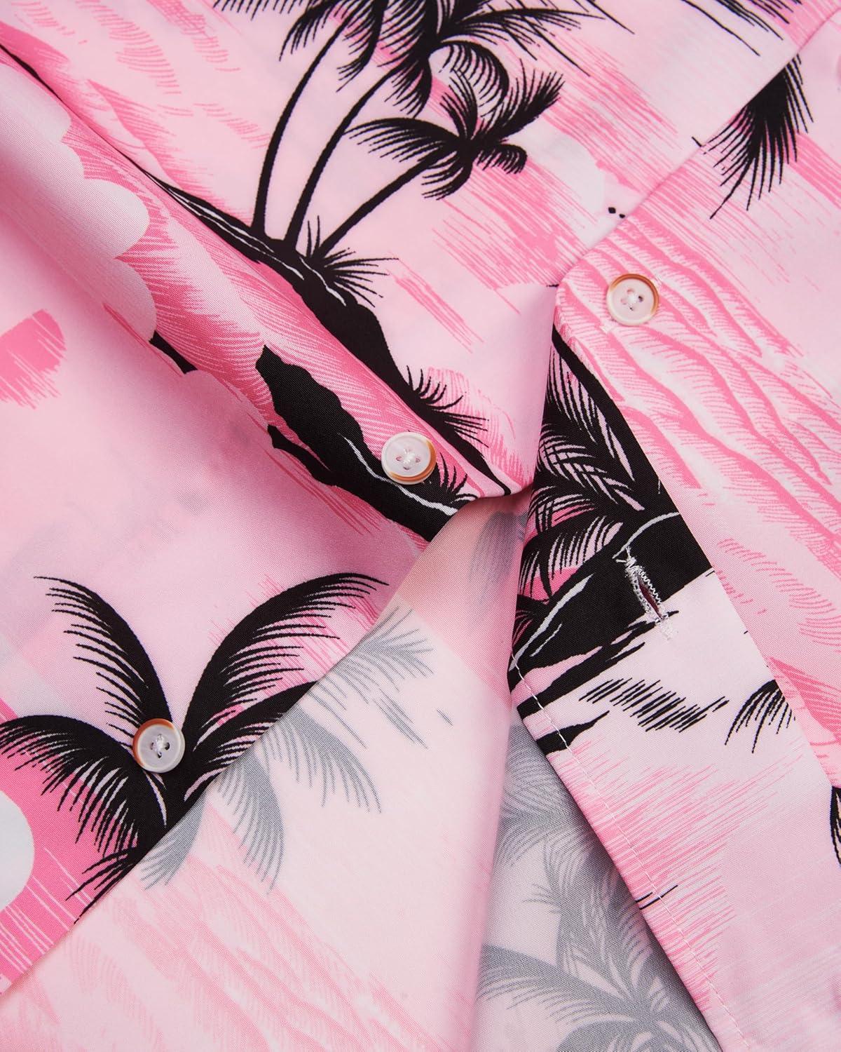 Alimens & Gentle Hawaiian Shirt for Men Summer Beach Casual Short Sleeve Button Down Shirts Printed Tropical Vacation Shirts(Pink Beach)