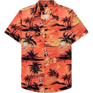 Alimens & Gentle Hawaiian Shirt for Men Summer Beach Casual Short Sleeve Button Down Shirts Printed Tropical Vacation Shirts(Dusk)