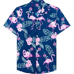 Alimens & Gentle Hawaiian Shirt for Men Summer Beach Casual Short Sleeve Button Down Shirts Printed Tropical Vacation Shirts(Pink Blue)