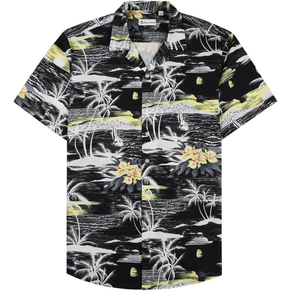 Alimens & Gentle Hawaiian Shirt for Men Summer Beach Casual Short Sleeve Button Down Shirts Printed Tropical Vacation Shirts(Black Beach)