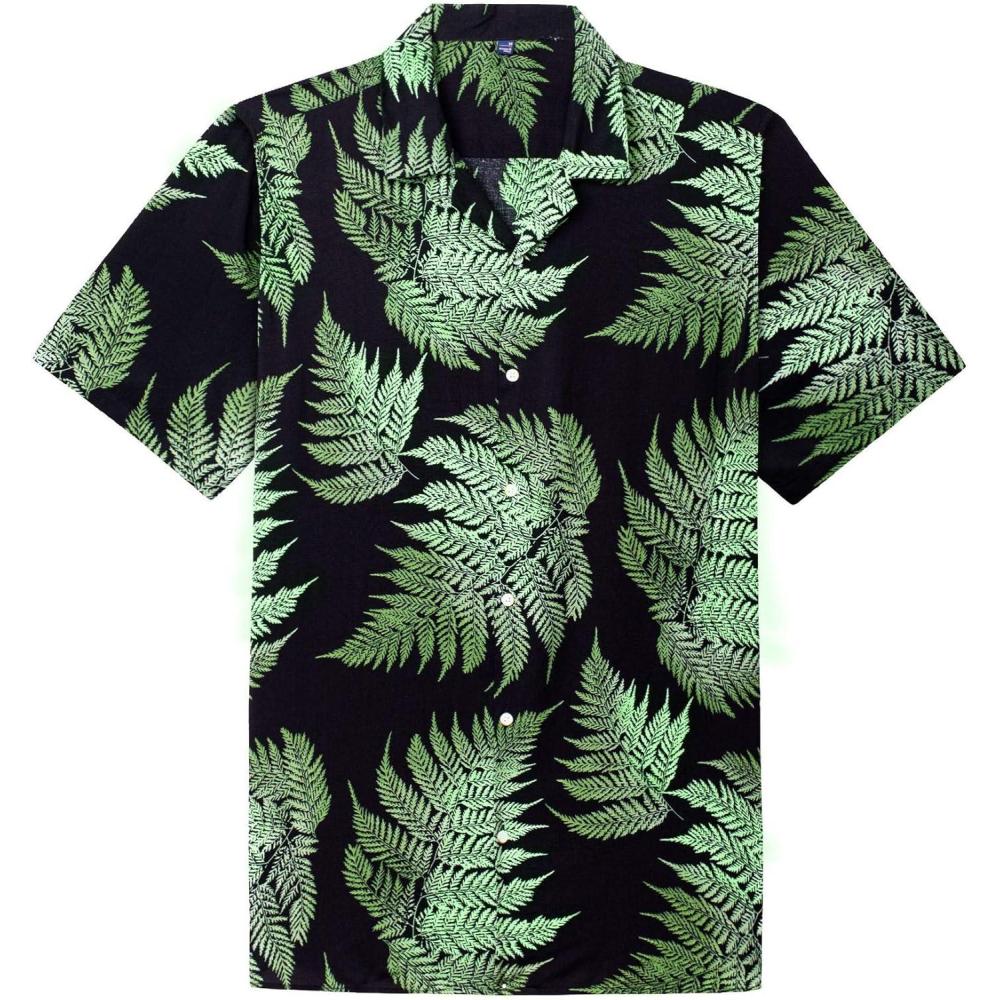 Alimens & Gentle Hawaiian Shirt for Men Summer Beach Casual Short Sleeve Button Down Shirts Printed Tropical Vacation Shirts(Black Green)