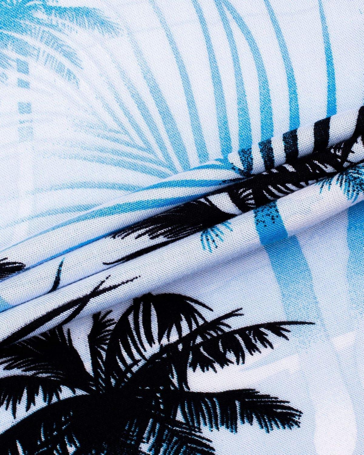 Alimens & Gentle Hawaiian Shirt for Men Summer Beach Casual Short Sleeve Button Down Shirts Printed Tropical Vacation Shirts(Blue White Palm)
