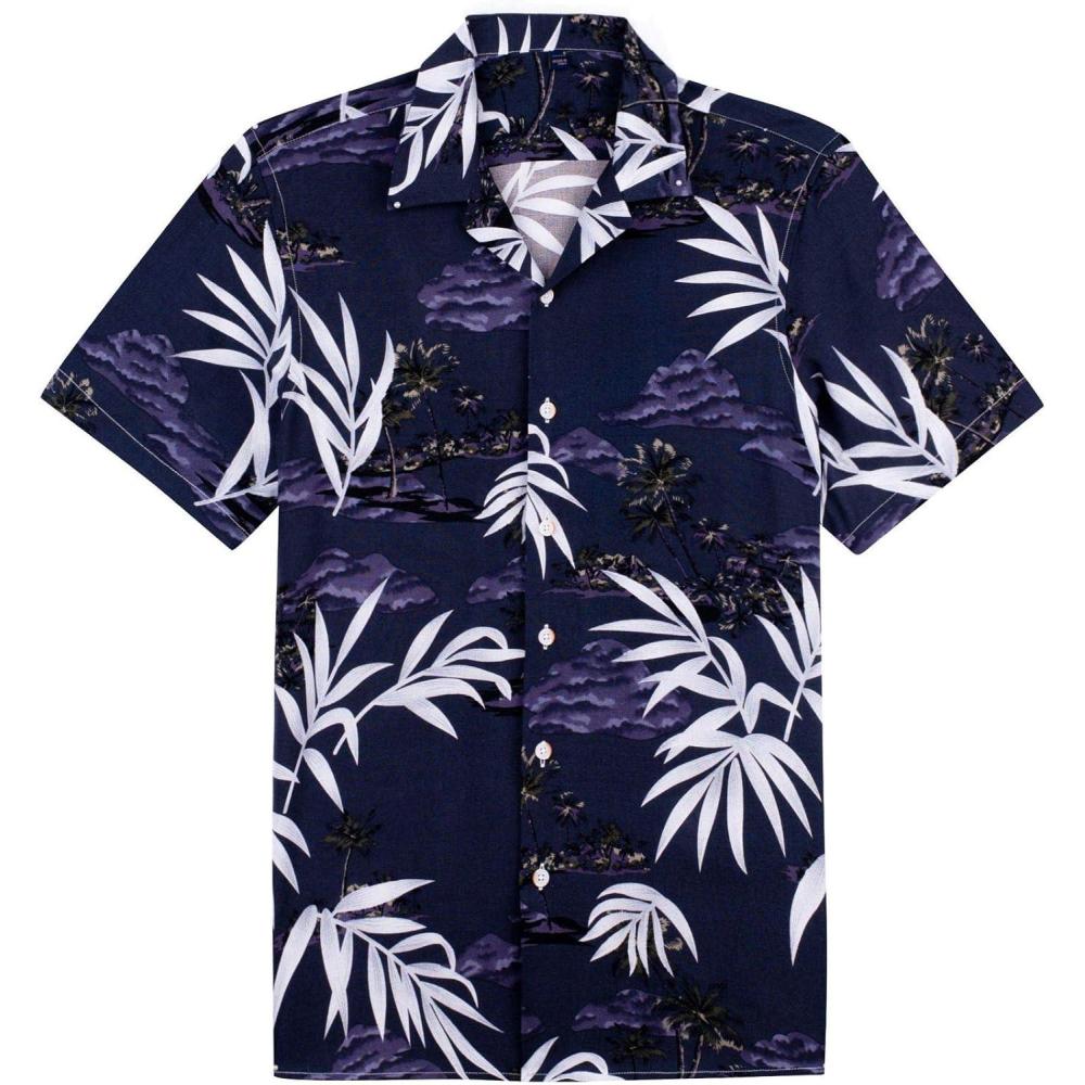 Alimens & Gentle Hawaiian Shirt for Men Summer Beach Casual Short Sleeve Button Down Shirts Printed Tropical Vacation Shirts(Dark Purple)
