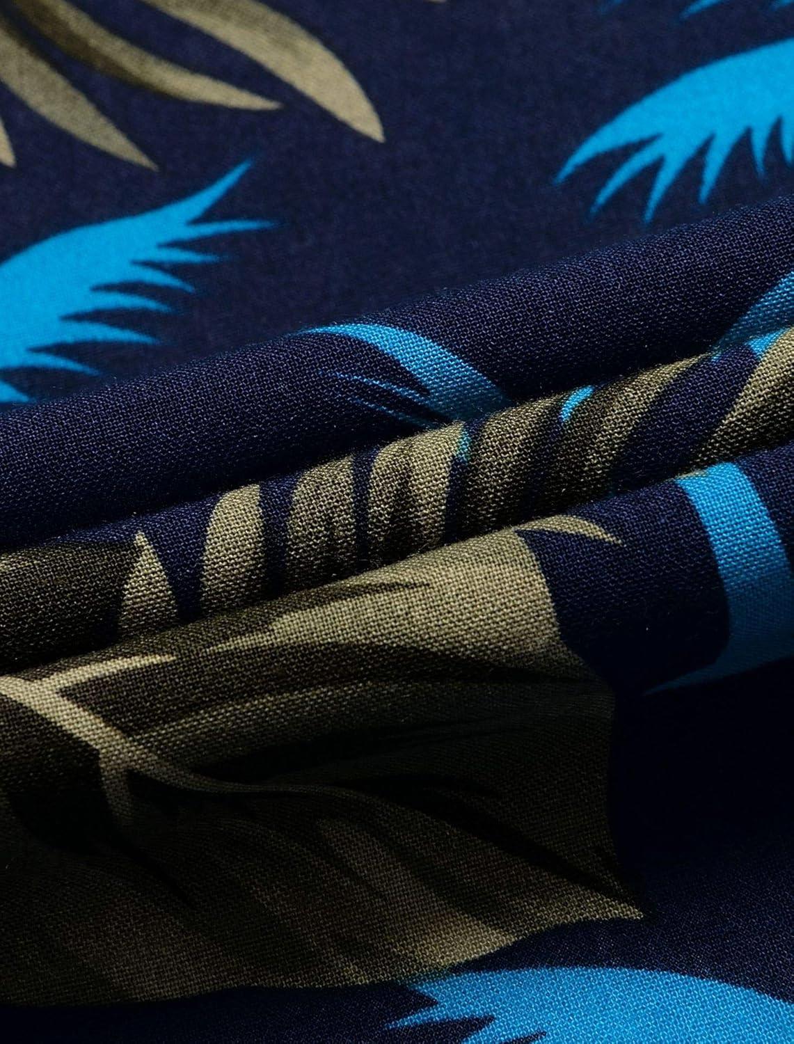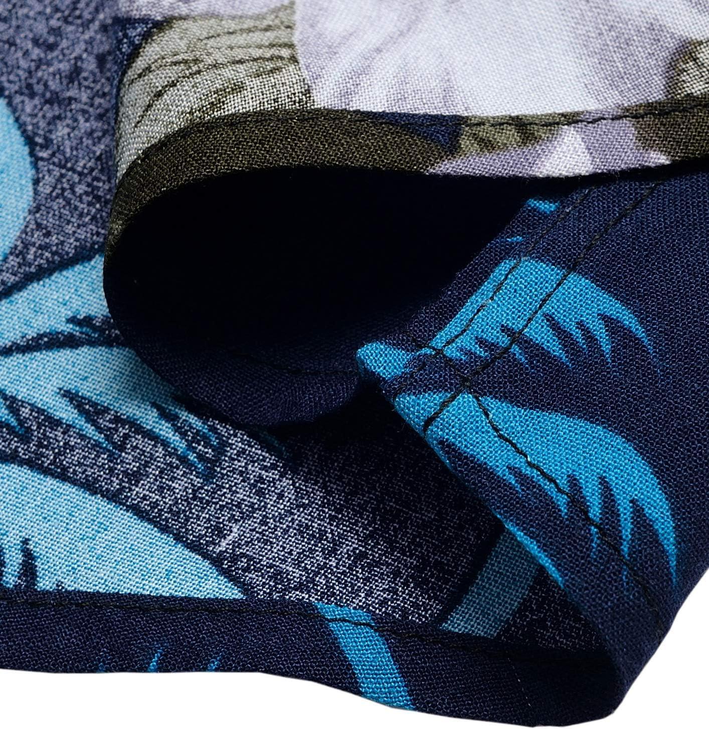 Alimens & Gentle Hawaiian Shirt for Men Summer Beach Casual Short Sleeve Button Down Shirts Printed Tropical Vacation Shirts(Navy Blue)