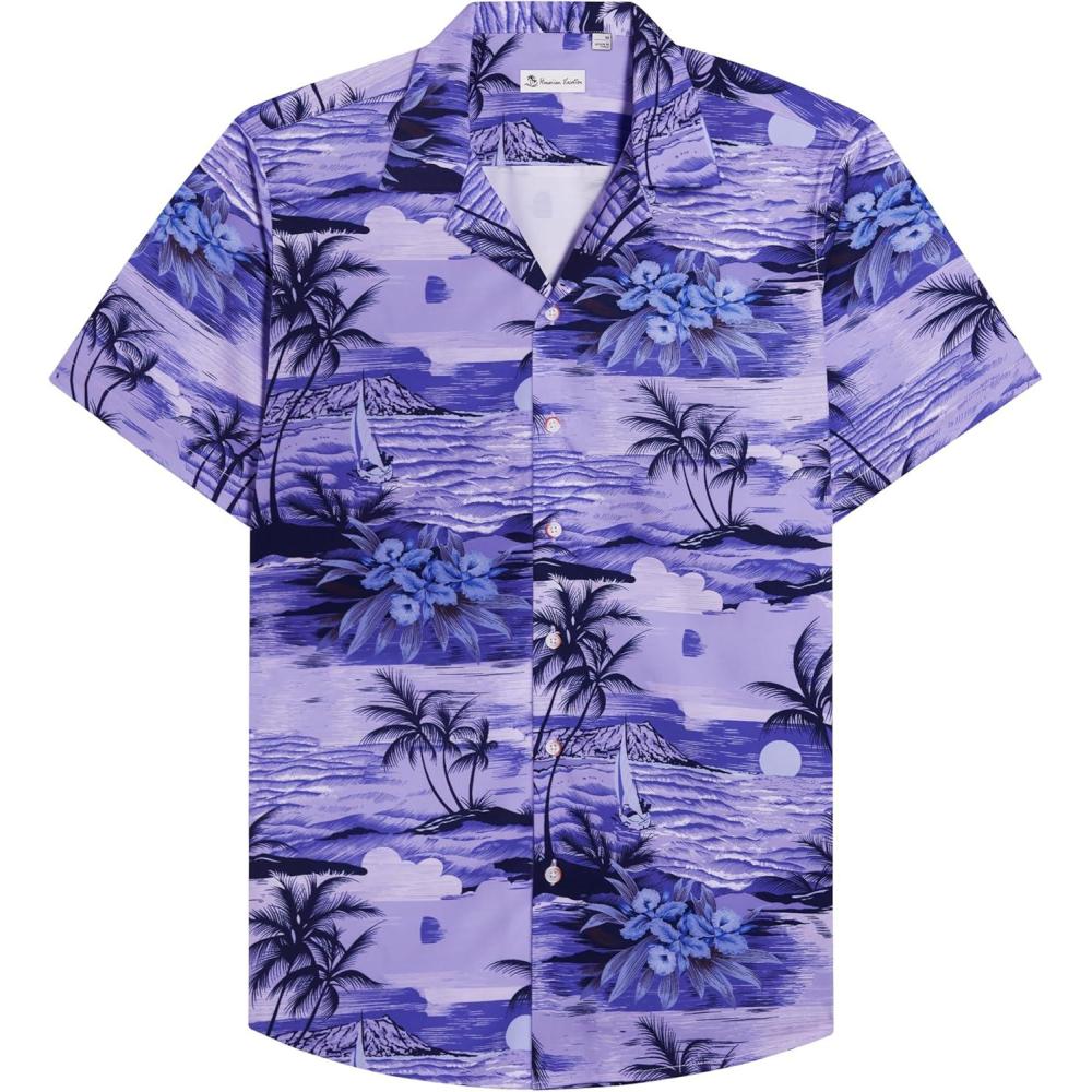 Alimens & Gentle Hawaiian Shirt for Men Summer Beach Casual Short Sleeve Button Down Shirts Printed Tropical Vacation Shirts(Purple Beach)