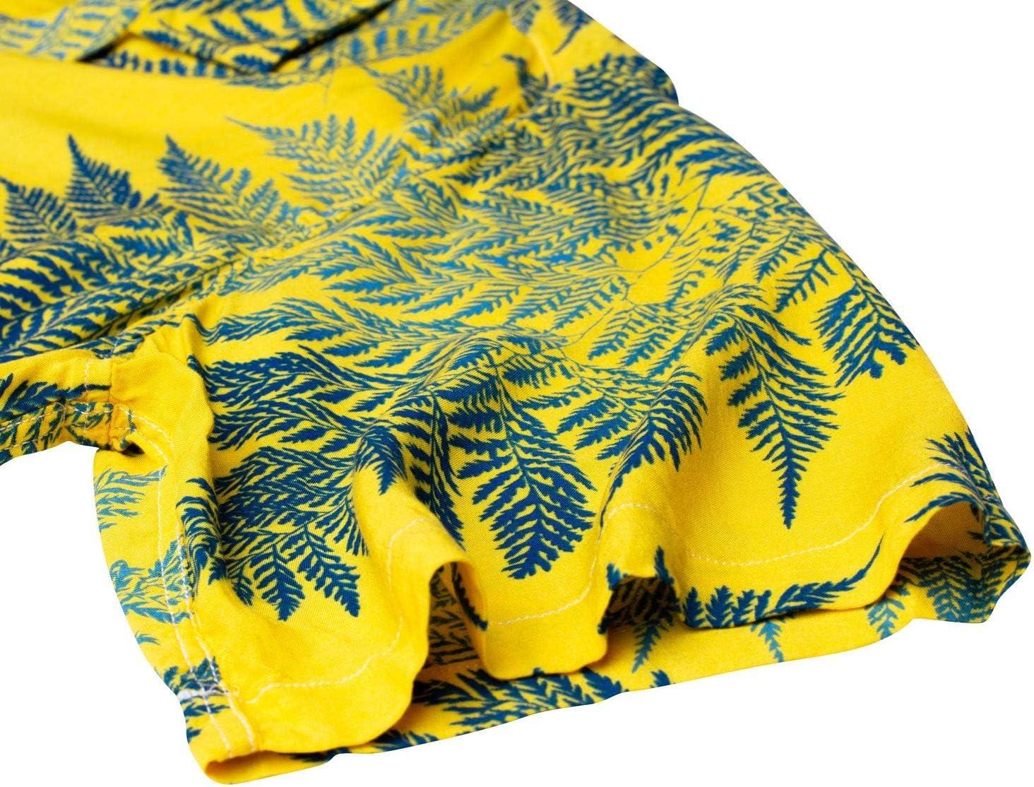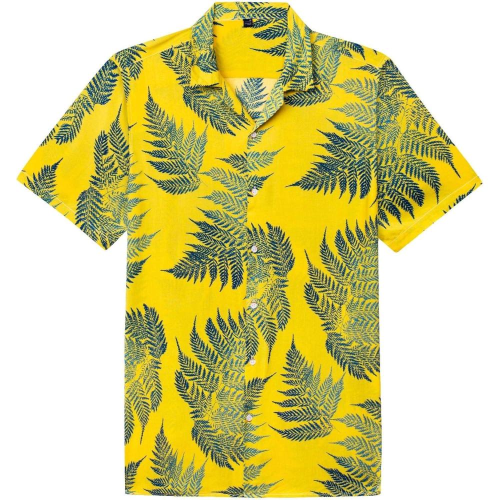 Alimens & Gentle Hawaiian Shirt for Men Summer Beach Casual Short Sleeve Button Down Shirts Printed Tropical Vacation Shirts(Yellow Blue)