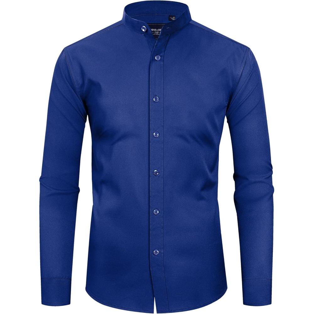 Alimens & Gentle Men’s Banded Collar Dress Shirts Wrinkle Free Long Sleeve Mandarin Collar Button Down Shirt(Royal Blue)