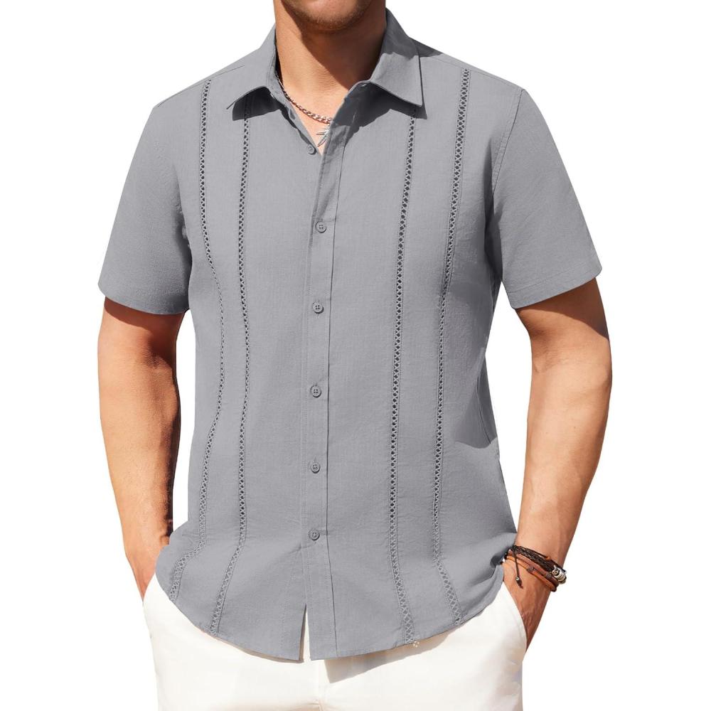 Alimens & Gentle Men’s Cuban Guayabera Shirts Cotton Linen Short Sleeve Button Down Shirts Casual Summer Beach Camp Shirt(Dark Grey)