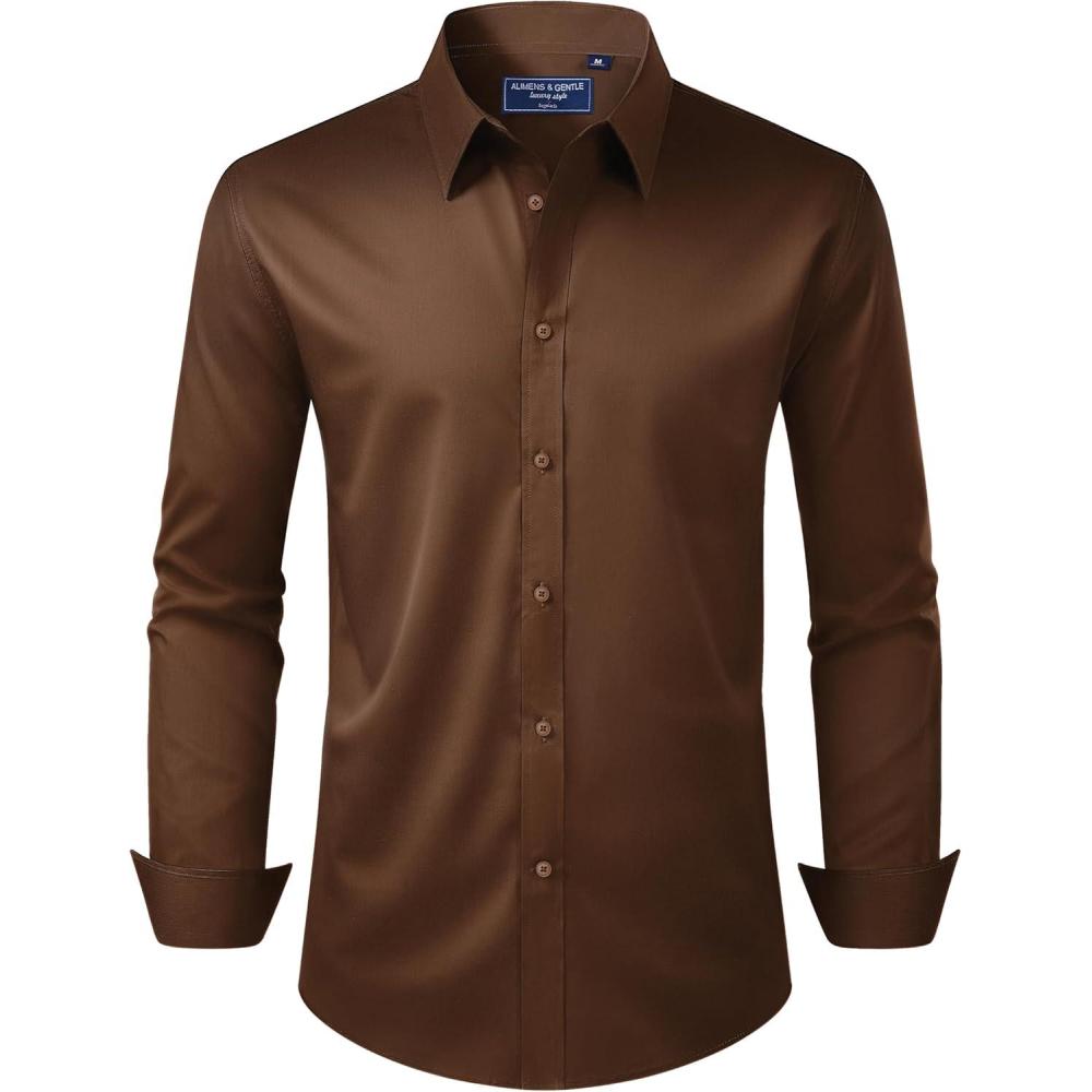 Alimens & Gentle Men’s Dress Shirt Regular Fit Stretch Stain Shield Long Sleeve Solid Business Wedding Button Down Shirts(Brown)