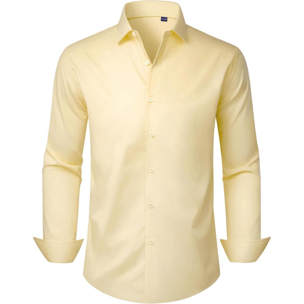 Alimens & Gentle Men’s Dress Shirts Long Sleeve Stretch Wrinkle Free Business Casual Button Down Shirt(Yellow)