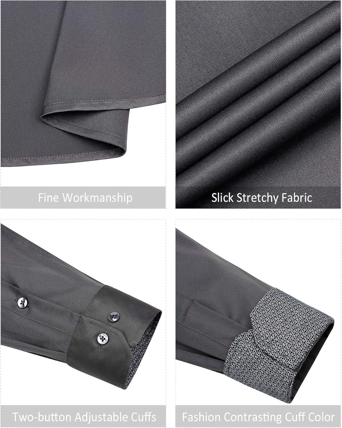 Alimens & Gentle Men’s Dress Shirts Long Sleeve Wrinkle-Free Business Casual Button Down Shirt(Grey Black)