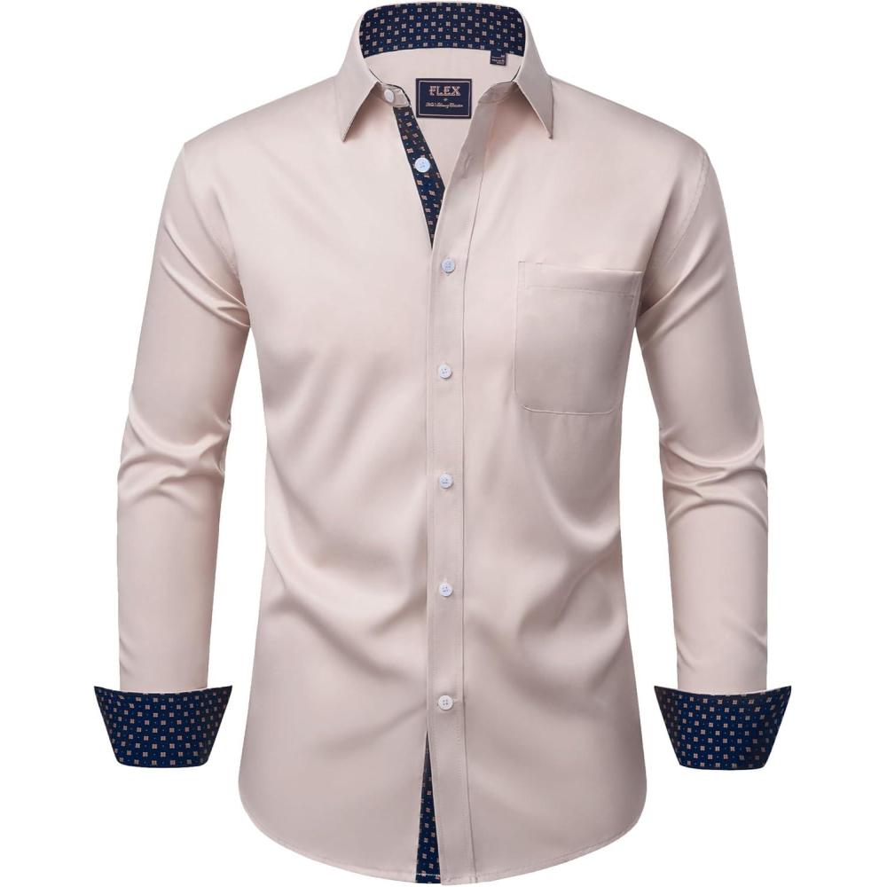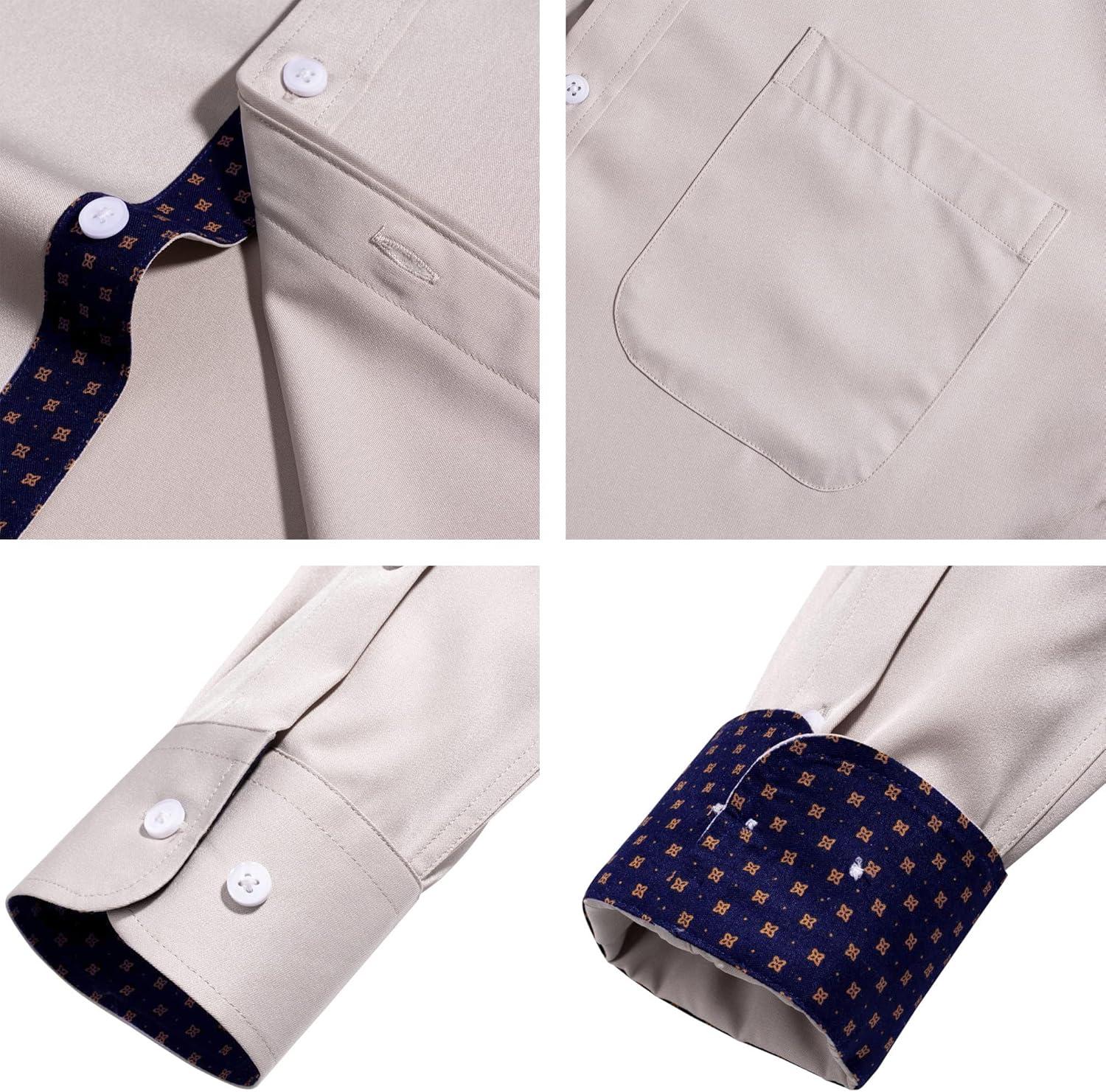 Alimens & Gentle Men’s Dress Shirts Long Sleeve Wrinkle-Free Business Casual Button Down Shirt(Tan)