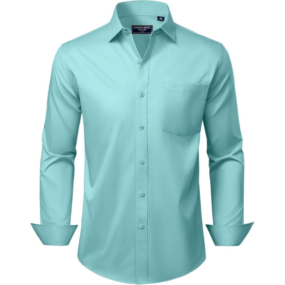 Alimens & Gentle Mens Dress Shirts Long Sleeve Wrinkle Free Stretch Business Casual Button Down Shirts(Grey Green)