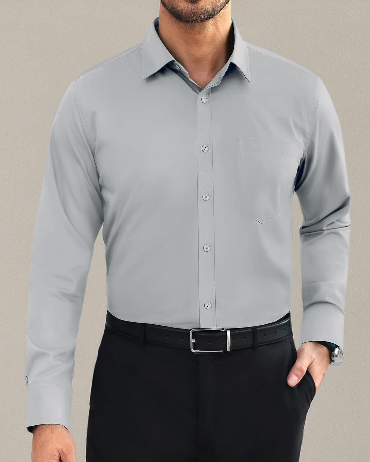 Alimens & Gentle Mens Dress Shirts Long Sleeve Wrinkle Free Stretch Business Casual Button Down Shirts(Light Grey)