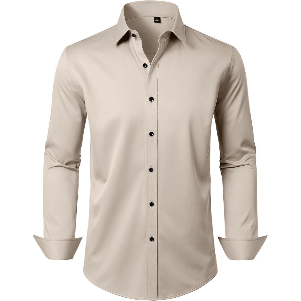 Alimens & Gentle Men’s Dress Shirts Long Sleeve Wrinkle Free Stretch Business Casual Wedding Button Down Shirt(Tan)