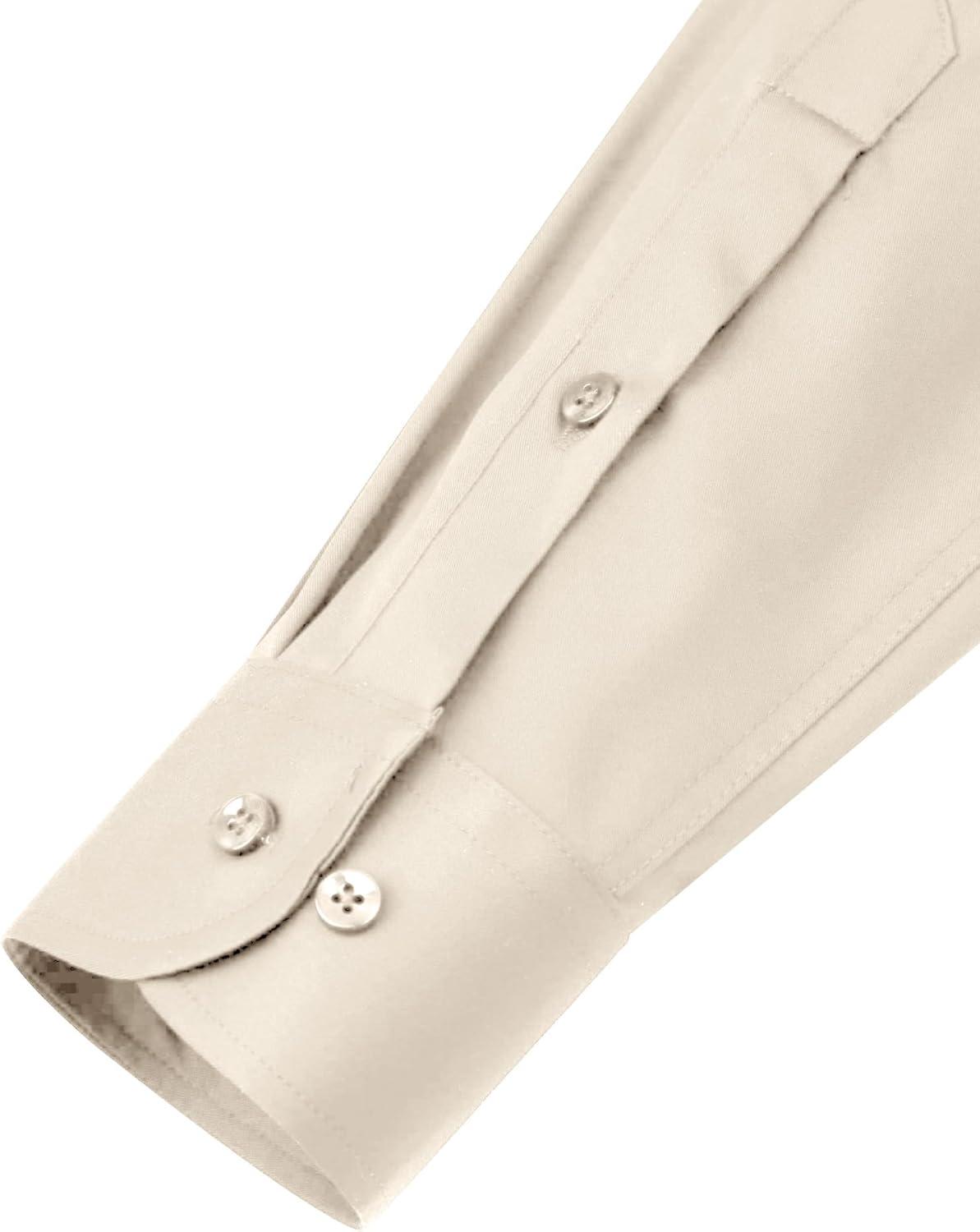 Alimens & Gentle Men’s Dress Shirts Long Sleeve Wrinkle-Free Stretch Shirts Solid Formal Button Down Shirt with Pocket(Beige)