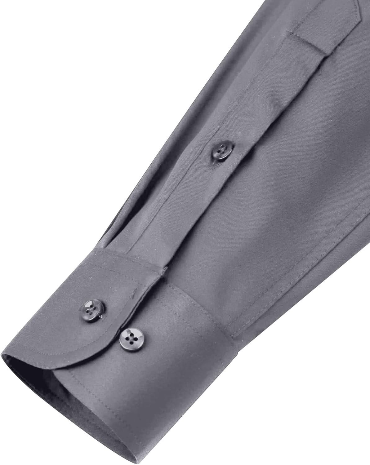 Alimens & Gentle Men’s Dress Shirts Long Sleeve Wrinkle-Free Stretch Shirts Solid Formal Button Down Shirt with Pocket(Dark Grey)
