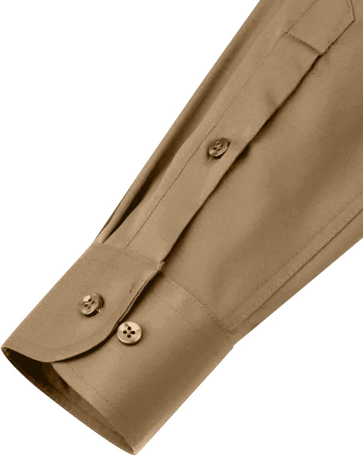Alimens & Gentle Men’s Dress Shirts Long Sleeve Wrinkle-Free Stretch Shirts Solid Formal Button Down Shirt with Pocket(Khaki)