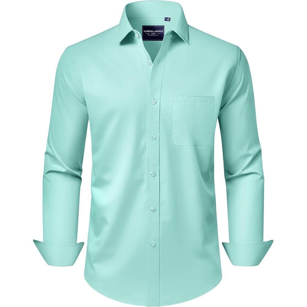 Alimens & Gentle Men’s Dress Shirts Long Sleeve Wrinkle-Free Stretch Shirts Solid Formal Button Down Shirt with Pocket(Mint Green)
