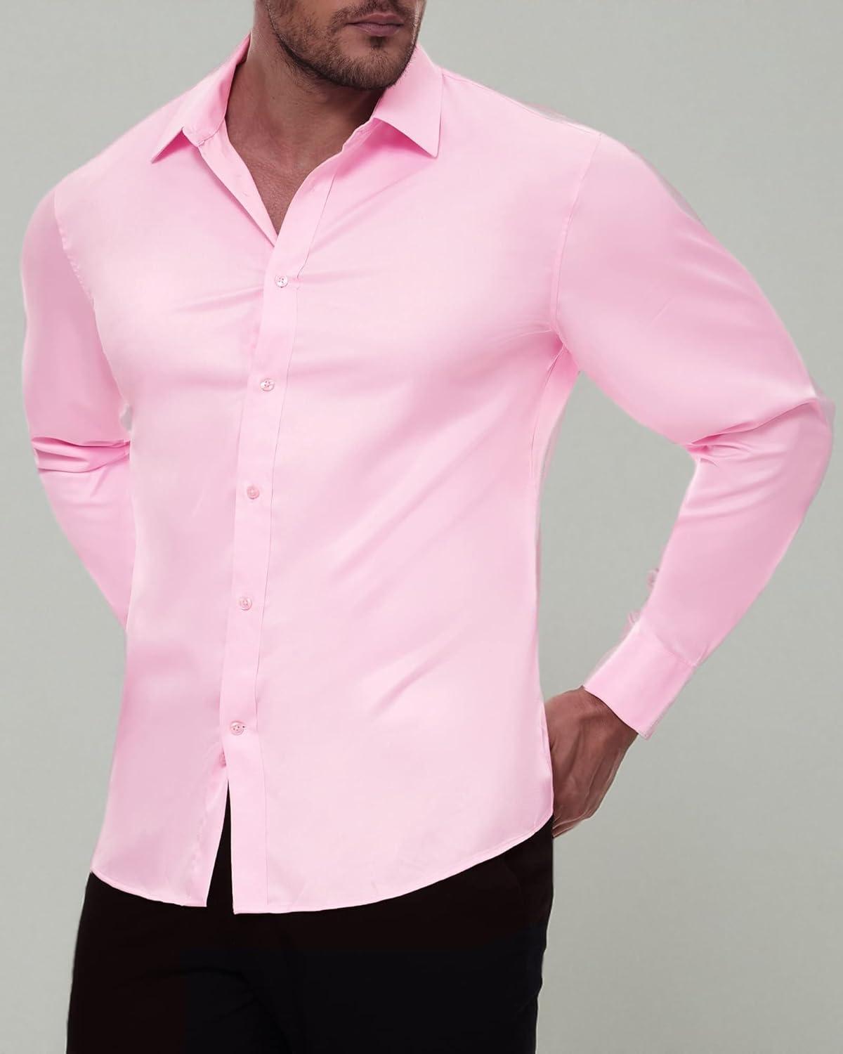 Alimens & Gentle Men’s Dress Shirts Transitional Weather Long Sleeve Stretch Wrinkle-Free Button Down Top(Pink)