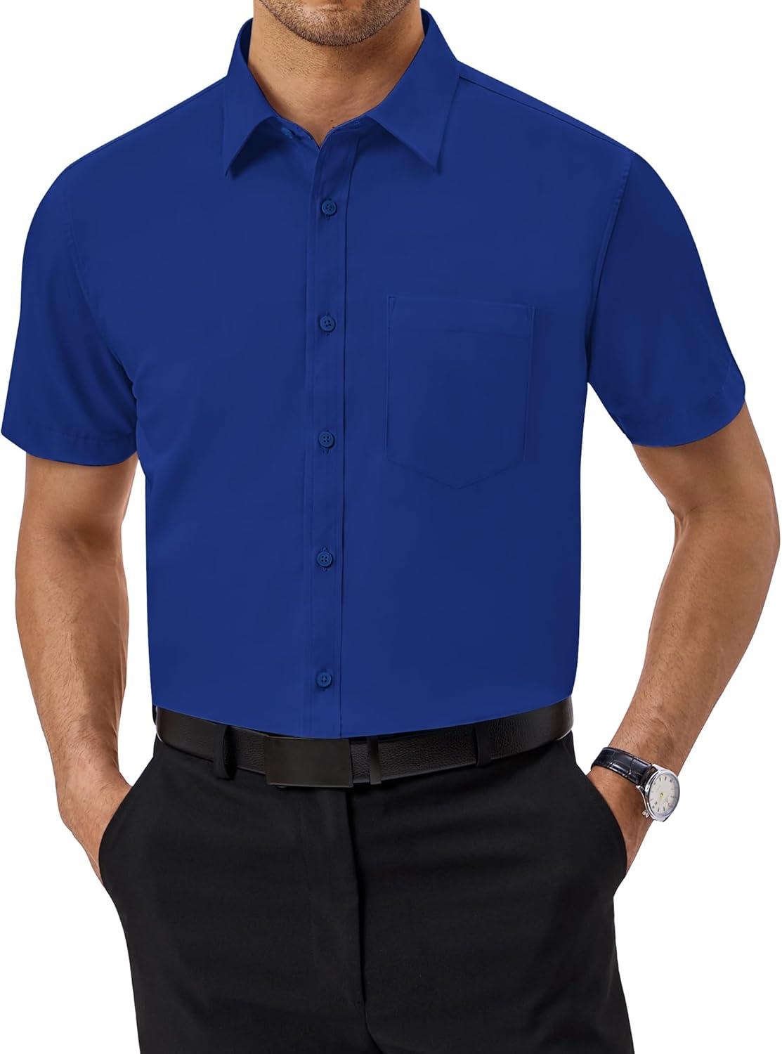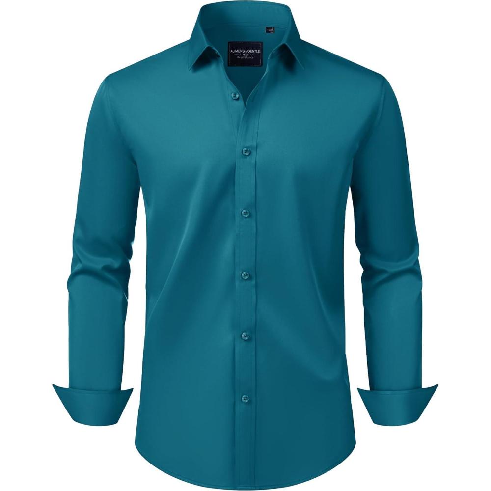 Alimens & Gentle Men’s Dress Shirts Transitional Weather Long Sleeve Stretch Wrinkle-Free Button Down Top(Teal)