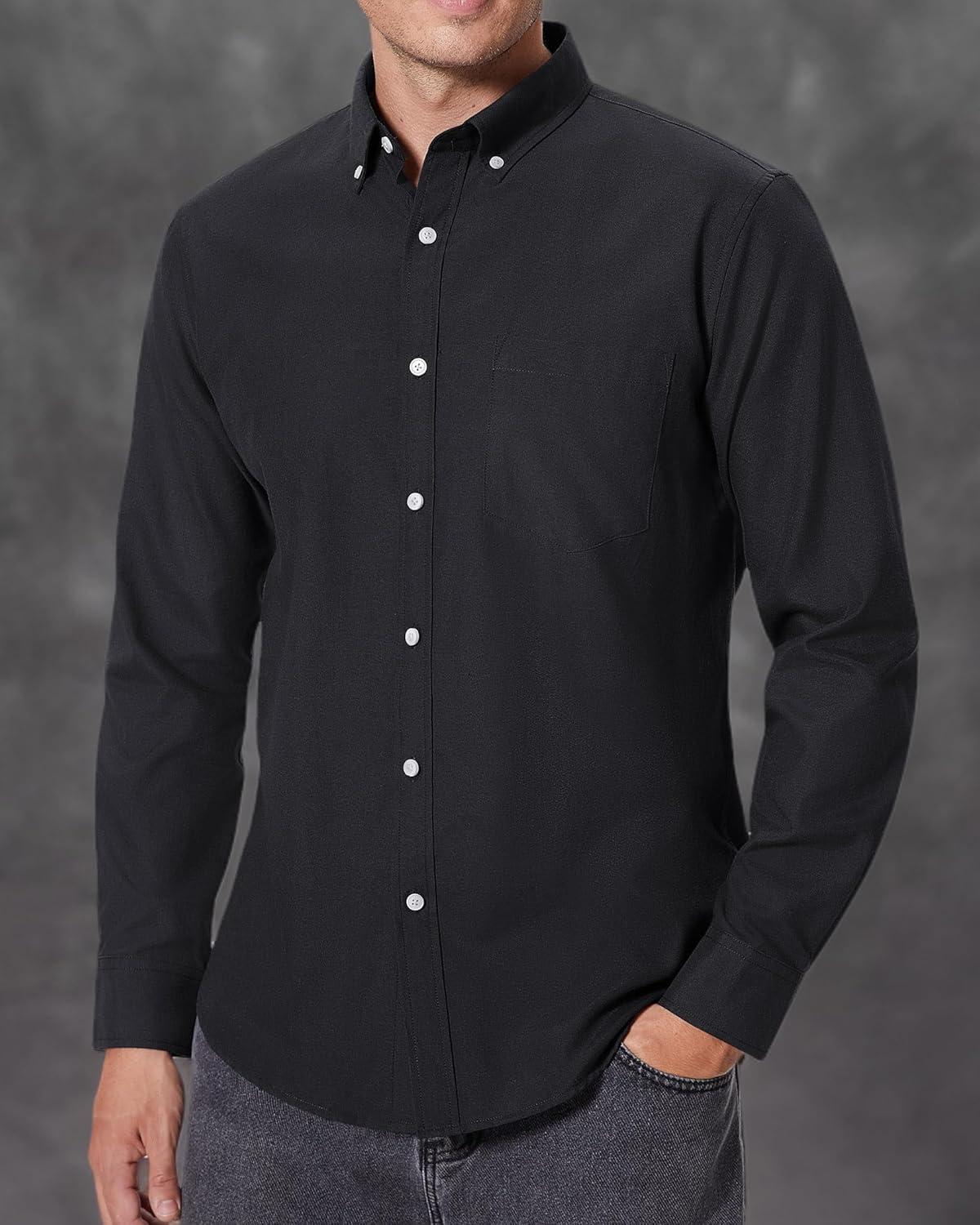 Alimens & Gentle Men’s Oxford Shirts Regular Fit Button Down Shirt Business Casual Shirts Long Sleeve Dress Shirt(Black)