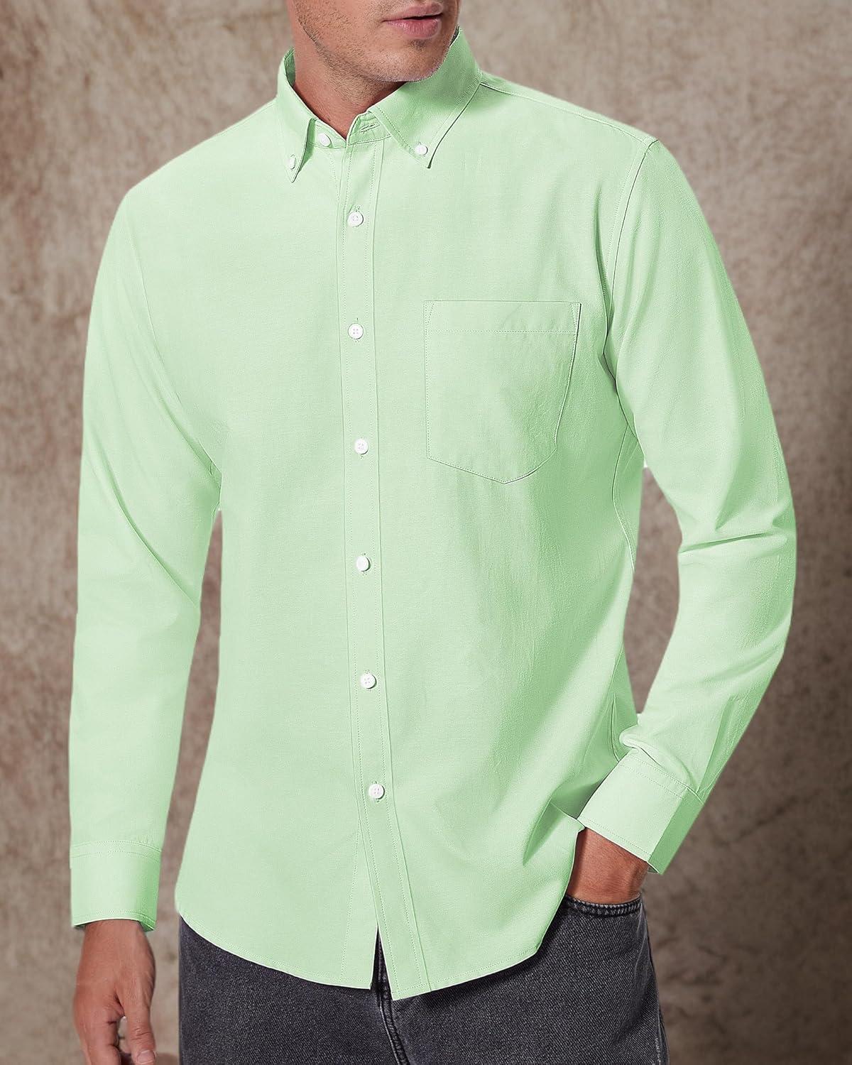 Alimens & Gentle Men’s Oxford Shirts Regular Fit Button Down Shirt Business Casual Shirts Long Sleeve Dress Shirt(Light Green)