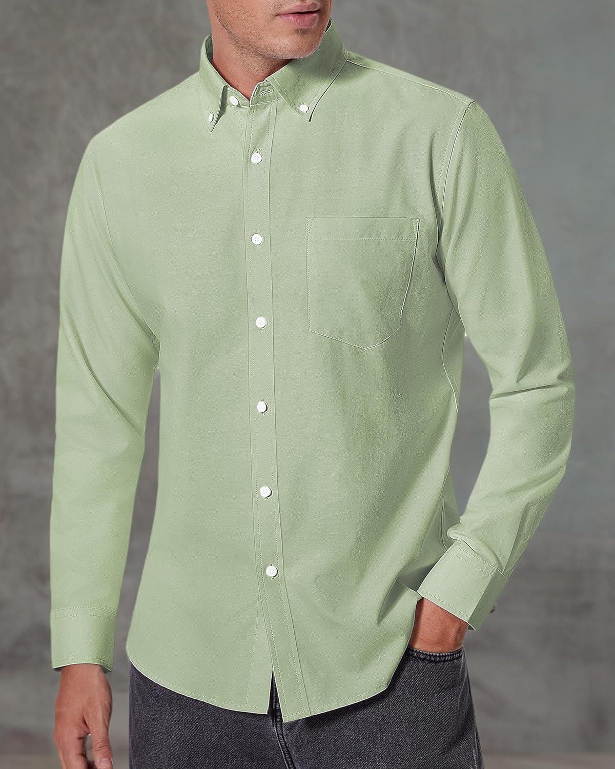 Alimens & Gentle Men’s Oxford Shirts Regular Fit Button Down Shirt Business Casual Shirts Long Sleeve Dress Shirt(Pea Green)