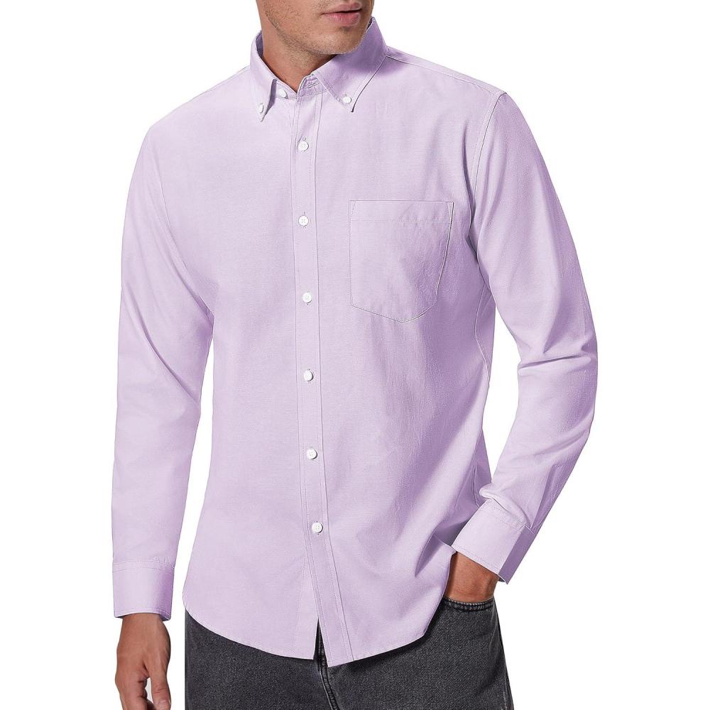 Alimens & Gentle Men’s Oxford Shirts Regular Fit Button Down Shirt Business Casual Shirts Long Sleeve Dress Shirt(Purple)